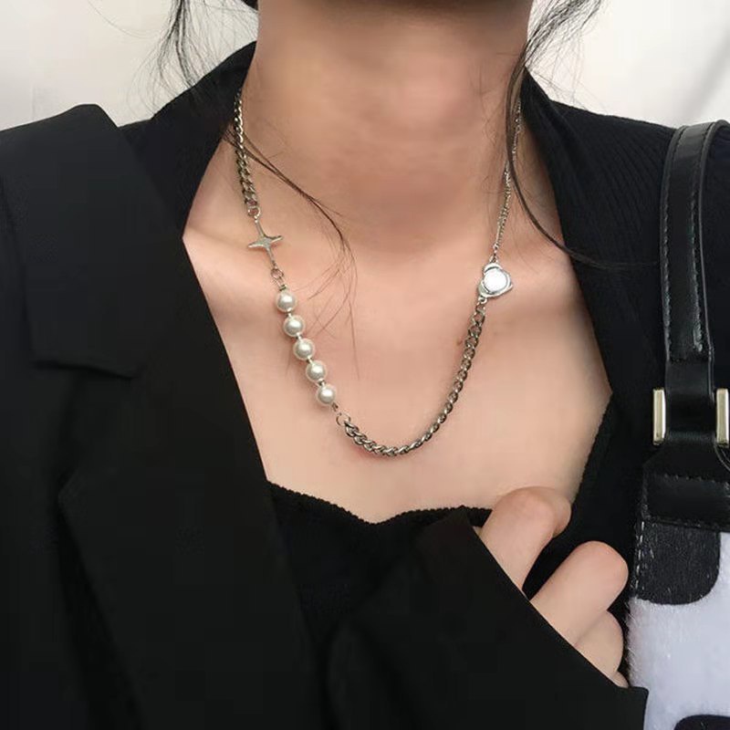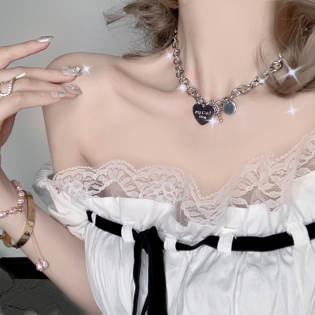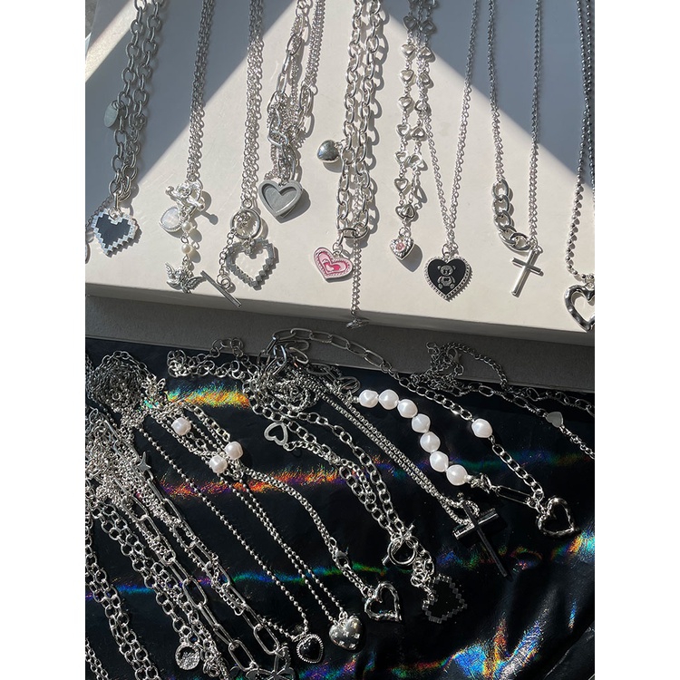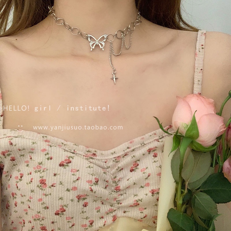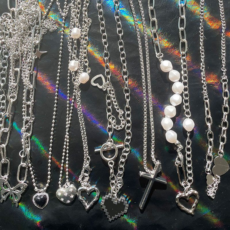 Y2K Fashion Silver Necklace Butterfly Heart Shape Choker Pearl Pendant Women Jewelry Accessories