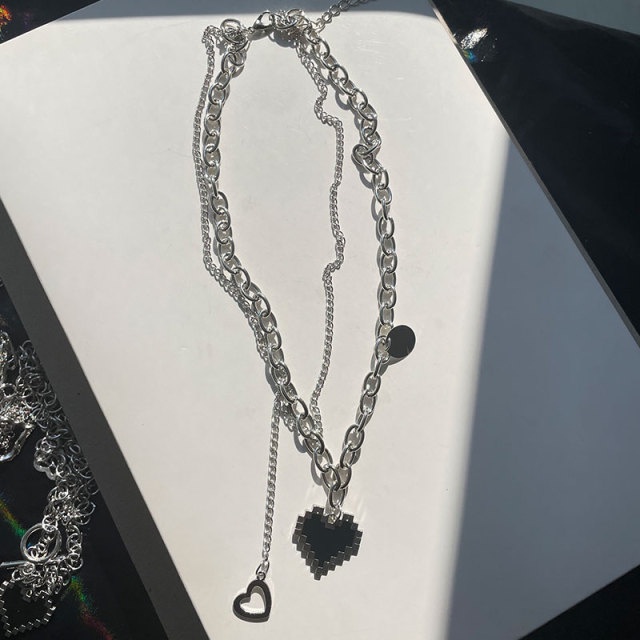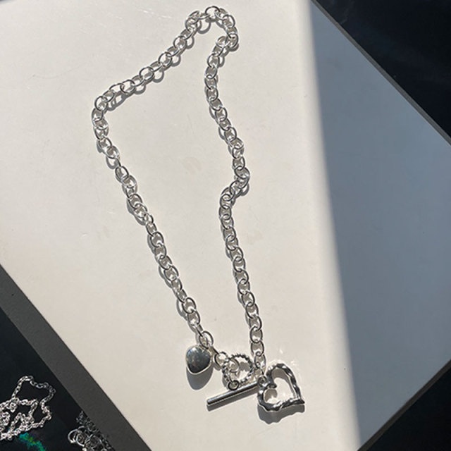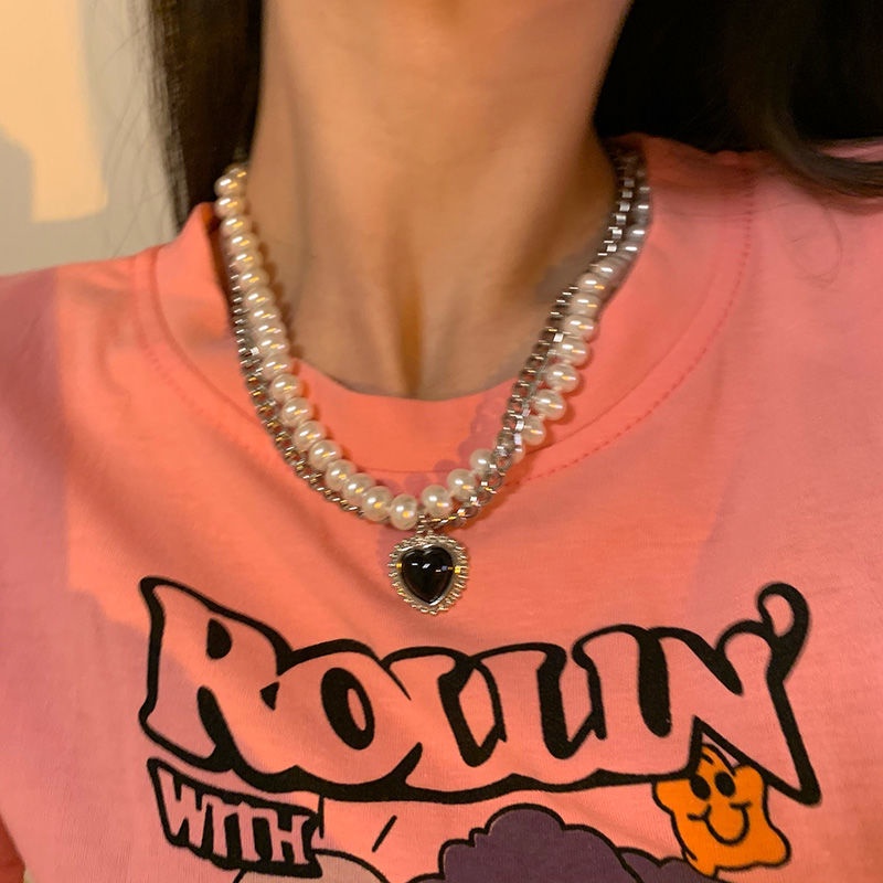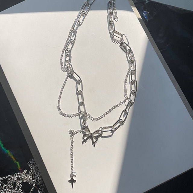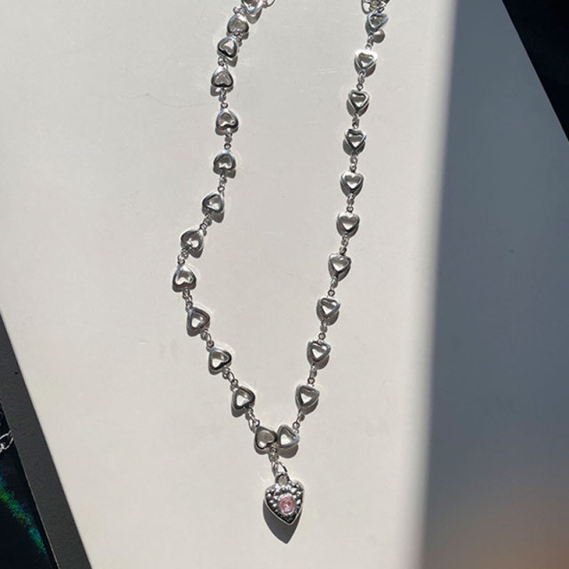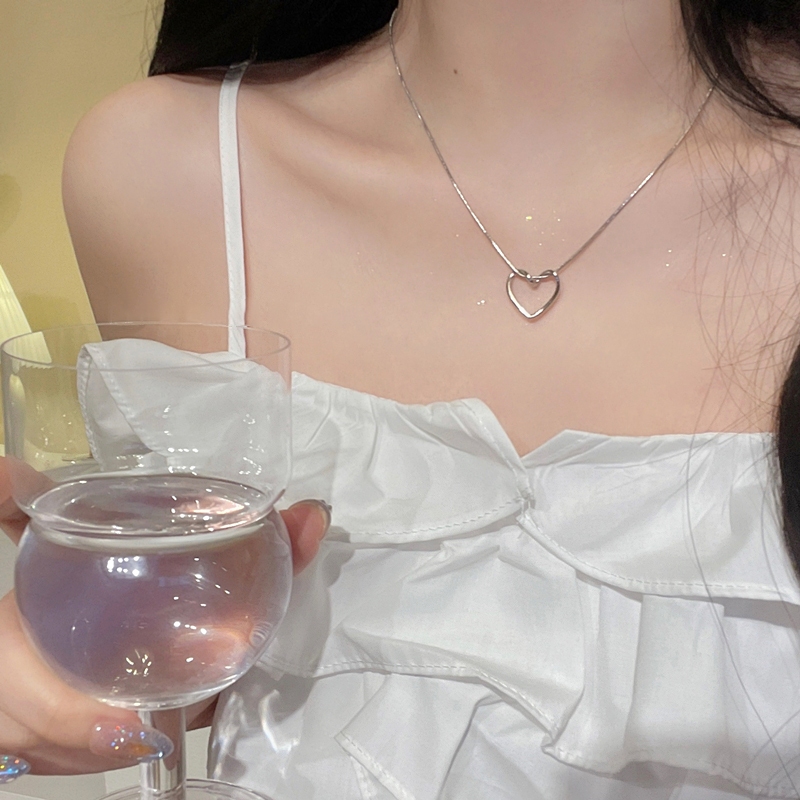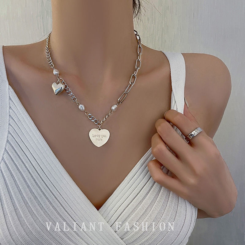 Y2K Fashion Silver Necklace Butterfly Heart Shape Choker Pearl Pendant Women Jewelry Accessories