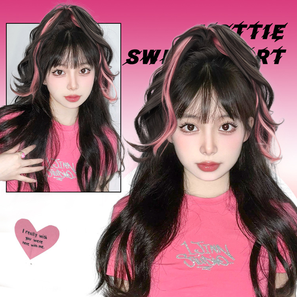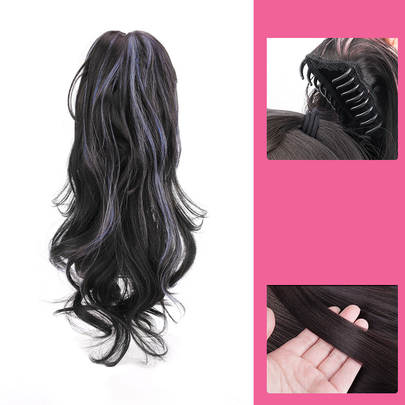 Y2K Style Pink Highlight Long Ponytail Clip-on Wig Cool Hottie Dyeing Color Braid Half Tie High Pony Tail Extension