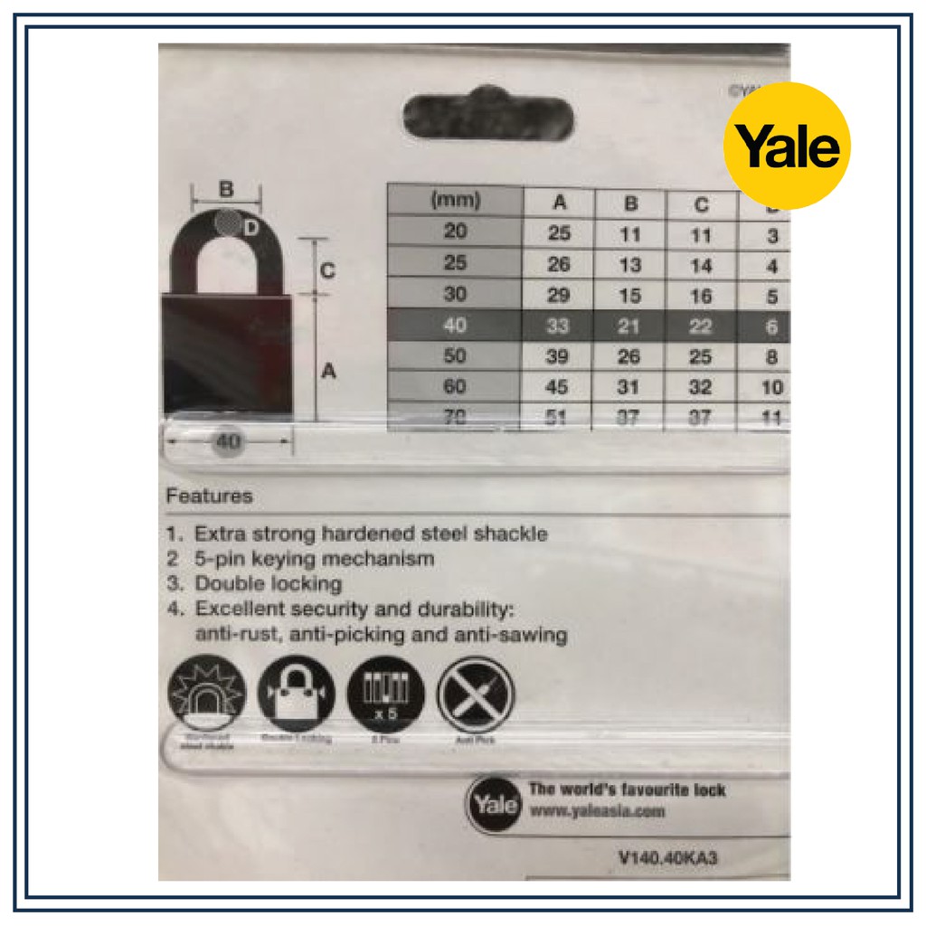 YALE Solid Brass High Security Key Alike Padlock 30mm/ 40mm / 50mm