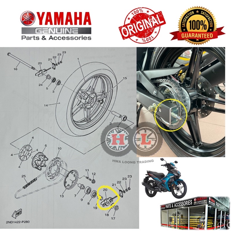 YAMAHA CHAIN PULLER Y15ZR ORIGINAL ( B17-F5388-01 / B17-F2174-00 )- CHAIN ADJUSTER PENARIK RANTAI Y15 YSUKU Y15ZR V1 V2