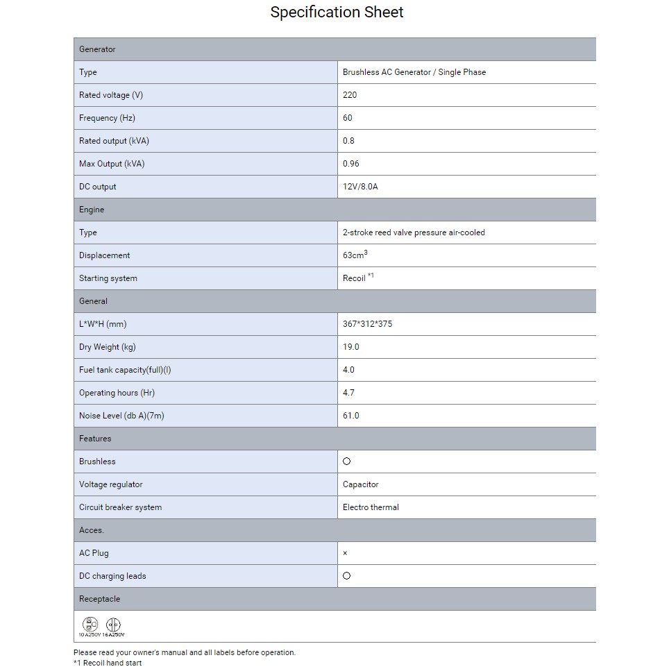 YAMAHA ET-1 GENERATOR 650W