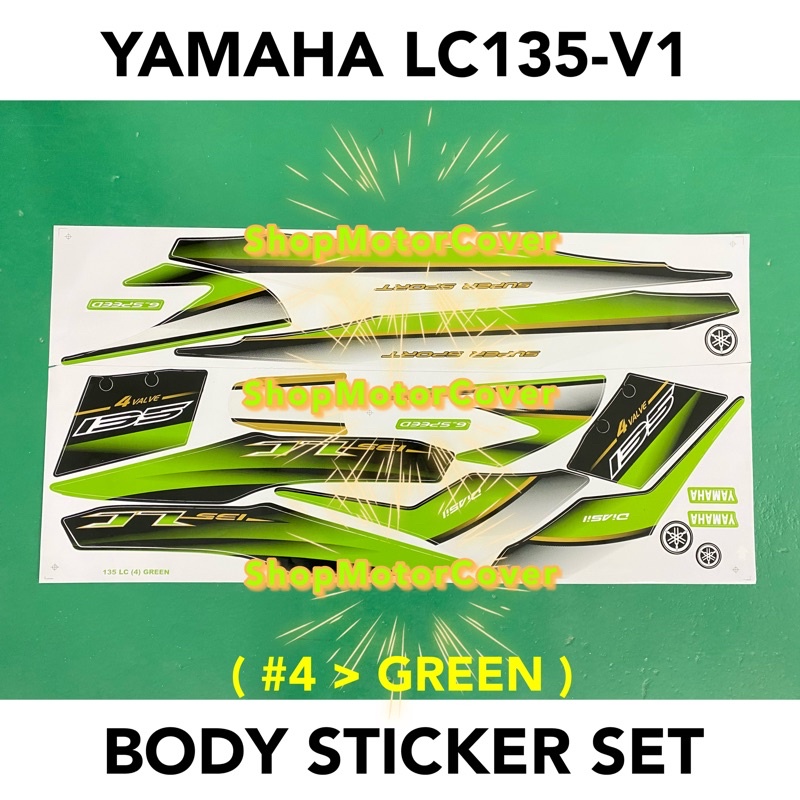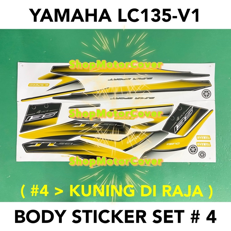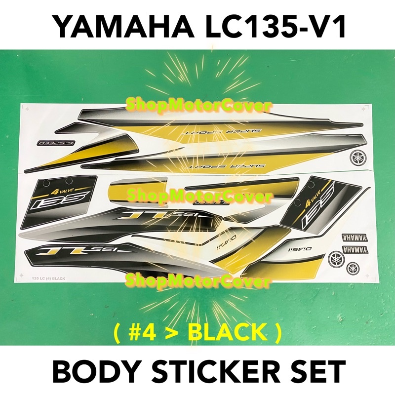 YAMAHA LC135 V1 No.4 BODY STICKER SET HITAM GOLD HIJAU KUNING DIRAJA BIRU PUTIH MERAH LC STRIPE BLUE WHITE BLACK YELLOW