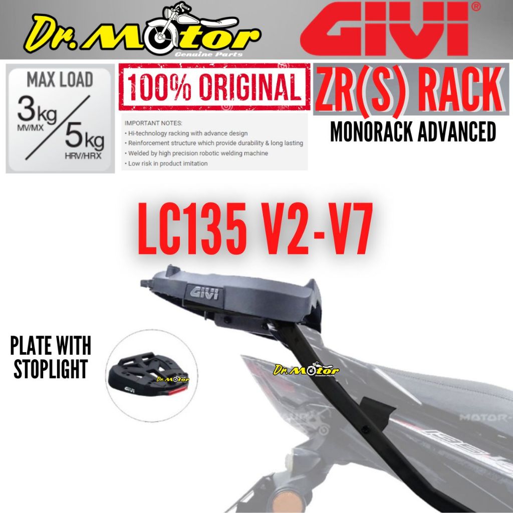 YAMAHA LC135 V2 V3 V4 V5 V6 V7 LC 135 GIVI ZR(S) HEAVY DUTY MONORACK MONO RACK J BOX KOTAK TOP CASE B32N E250N B33NM RED