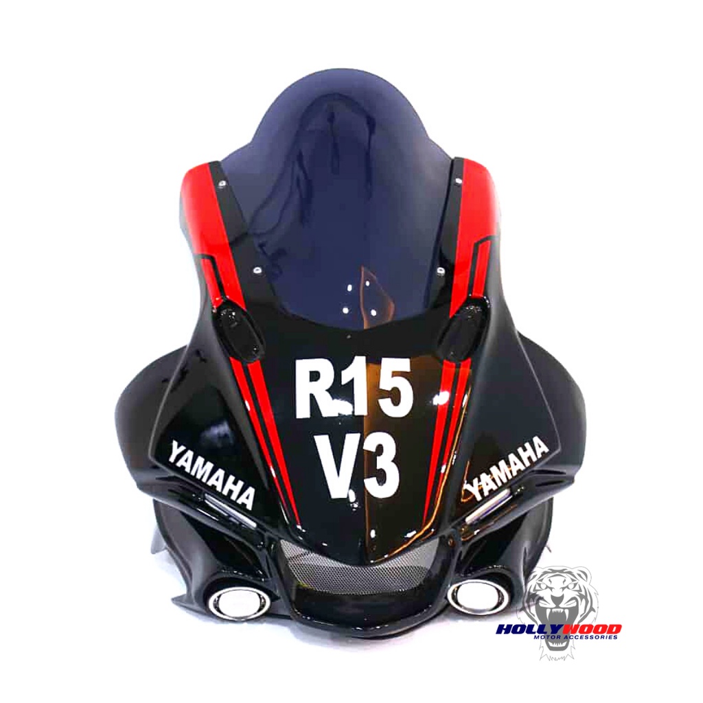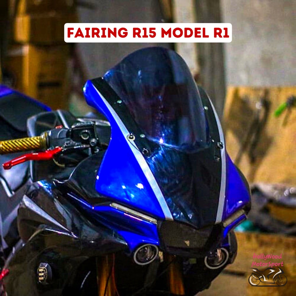 YAMAHA R15 COVER KEPALA FAIRING DEPAN + HID PROJECTOR LIGHT MODEL RIM / COWLING R15 DESIGN RIM WITH VISOR BUBBLE & H.I.D