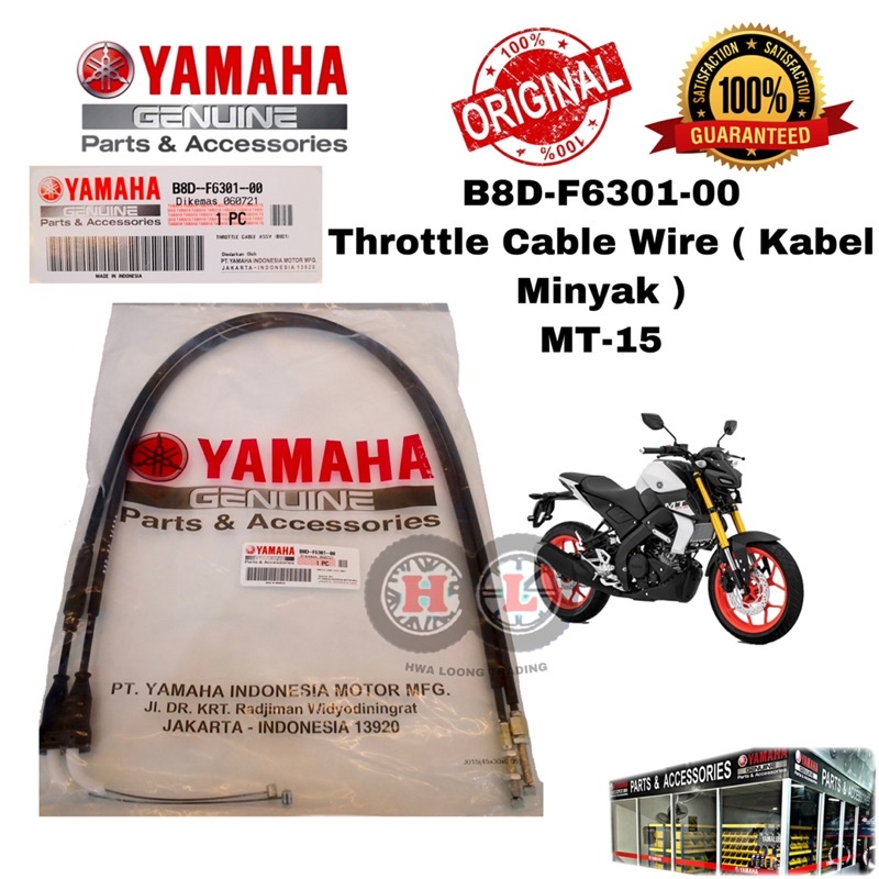 YAMAHA THROTTLE CABLE MINYAK MT15 ORIGINAL (B8D-F6301-00) - THROTTLE WIRE CABLE MINYAK MT-15 MT15 HLY ORIGINAL