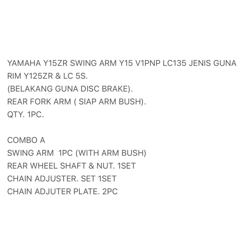 YAMAHA Y15ZR SWING ARM Y15 V1 PNP LC135 JENIS GUNA RIM Y125ZR & LC 5S STD 2IN 3IN