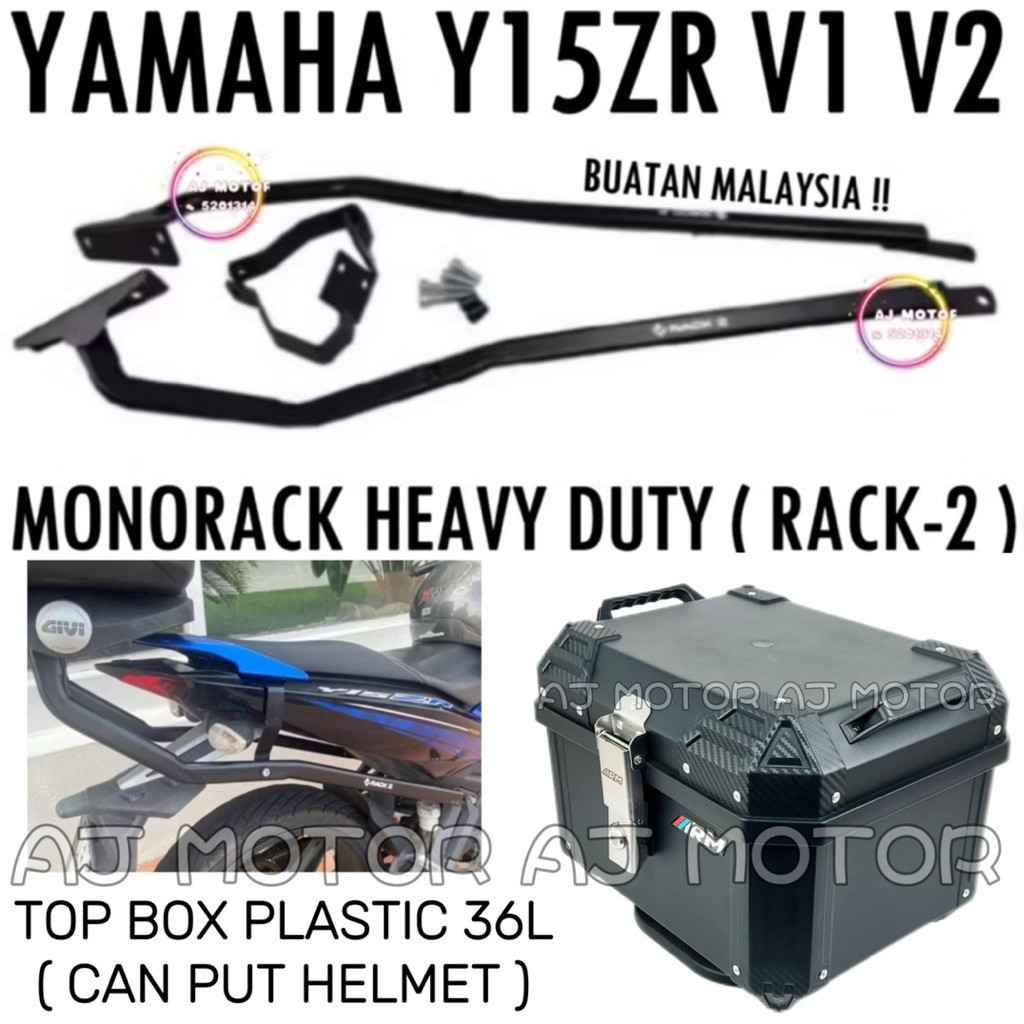 YAMAHA Y15ZR V1 V2 RACK-2 MONORACK HEAVY DUTY Y15 TAPAK J TOP BOX BRACKET KAKI BELAKANG KOTAK CASE CASES ALLOY GSB