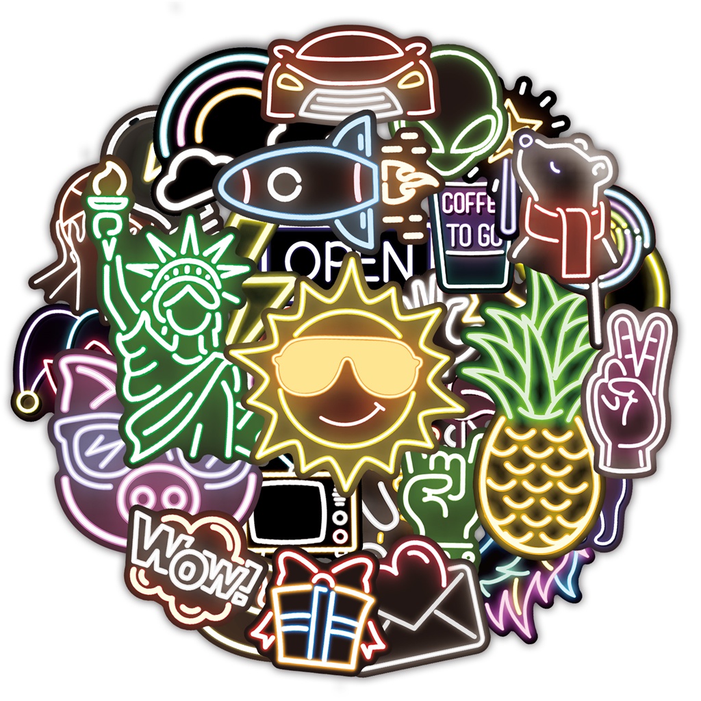 YAMIOW Glow in the Dark Waterproof Neon Stickers Luminous Cute Cool Girl Teens Wall Ceiling Bedroom Glow Decorations On Laptop Luggage Table Book Water Bottle 30 Pcs/Pack