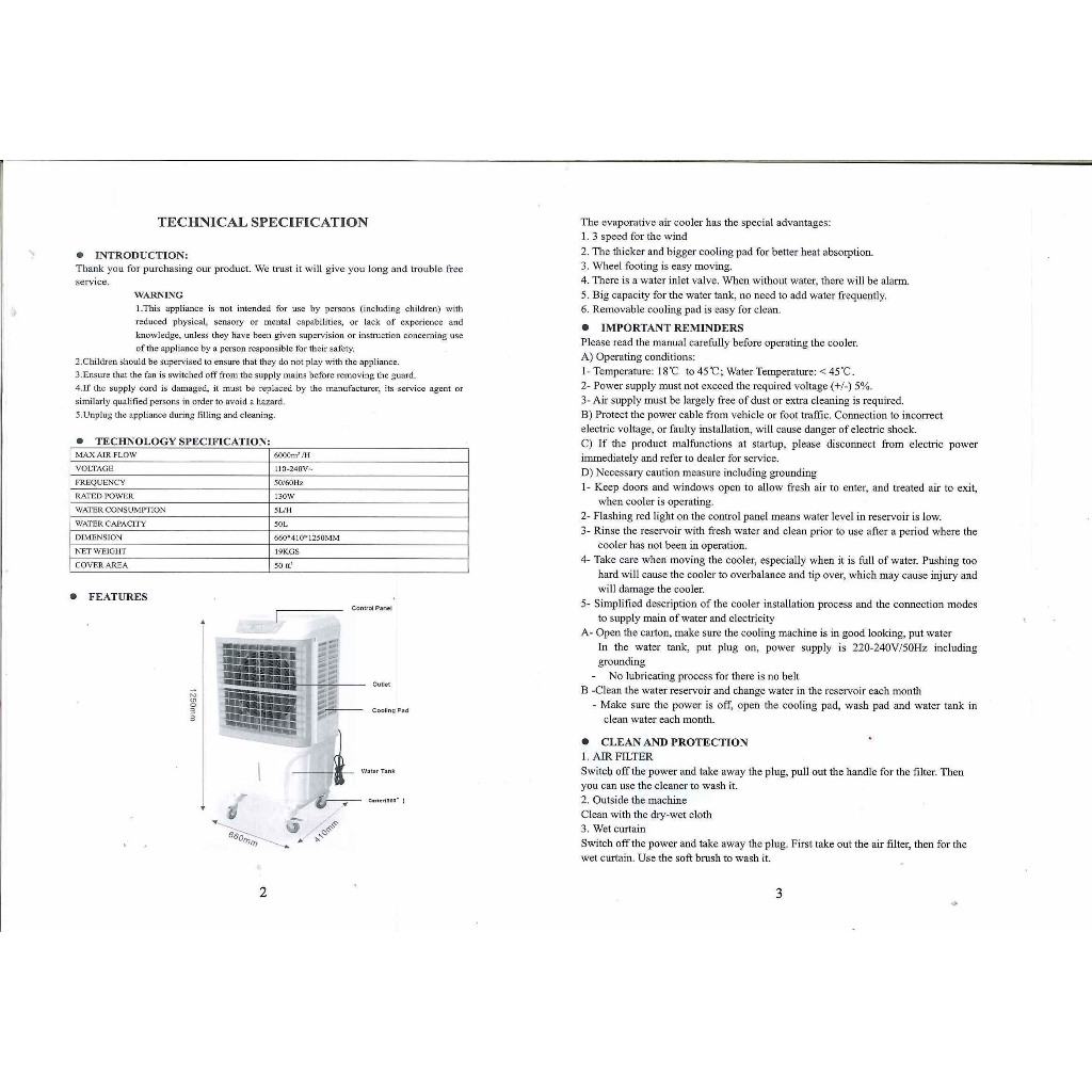 YET YF60i Water Air Cooler Fan 50L Tank Household Home Appliances Cooler 6000 m³/h Air Flow For Cooling With Ice Pack