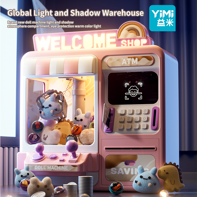 YIMI 2 in 1 Kids Claw Machine Toys Large Doll Machine Toy Piggy Bank for Kids ATM Coin Bank Password Saving Box for New Year Gift
