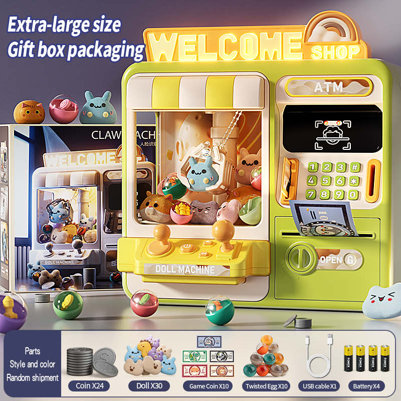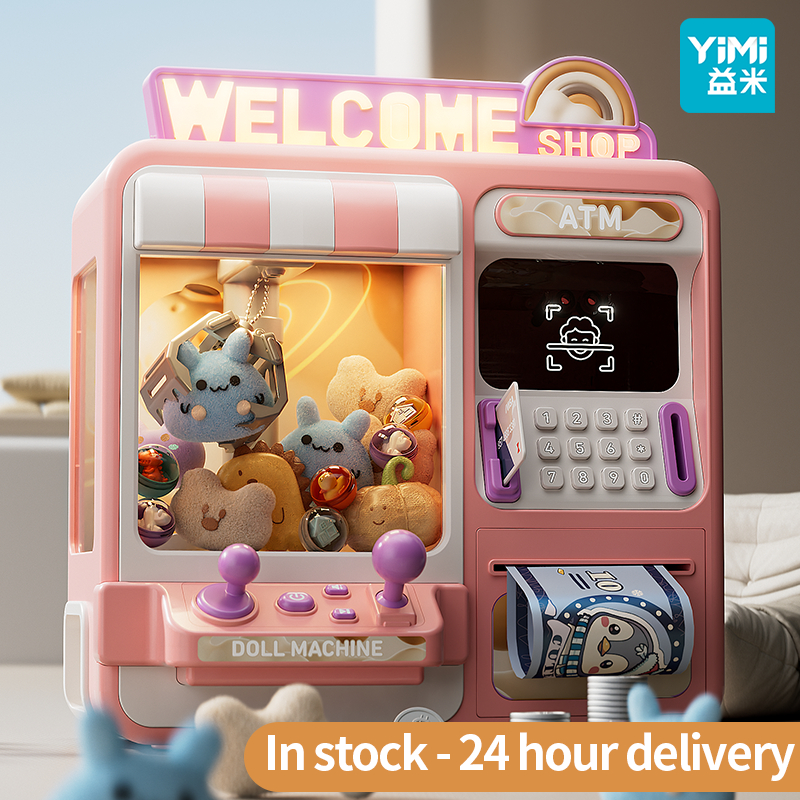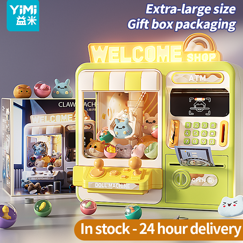 YIMI 76Pcs Kids Claw Machine Toys 2 in 1 Piggy Bank Doll Machine Large Doll Machine Toy Piggy Bank for Kids ATM Coin Bank Password Saving Box
