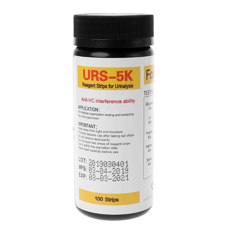 YIN 100Pcs URS-5K Glucose pH Protein Ketone Blood Urine Test Strip Reagent Strip Urinalysis With Anti-VC Interferenc
