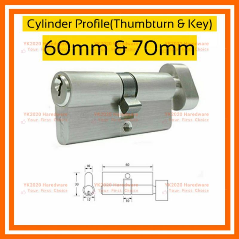 YK CYLINDER PROFILE INDOOR DOOR LOCK HOOK /THUMBTURN/KEY CYLINDERS LOCK/60MM/70MM