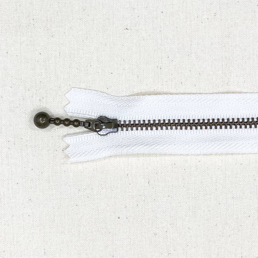 YKK #3 Metal Zip Antique Bronze Brass Ball Drop Puller Zipper for DIY Craft