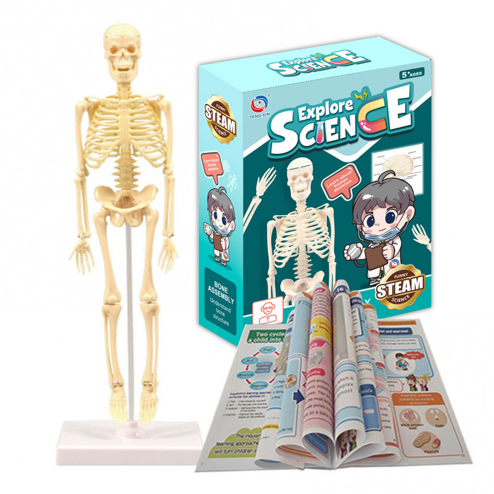 YL Anatomy Lab Human Skeleton Model, 35CM Skeleton Replica Mounted to Base for Display, Movable Arms and Legs, and Details of Human Bones