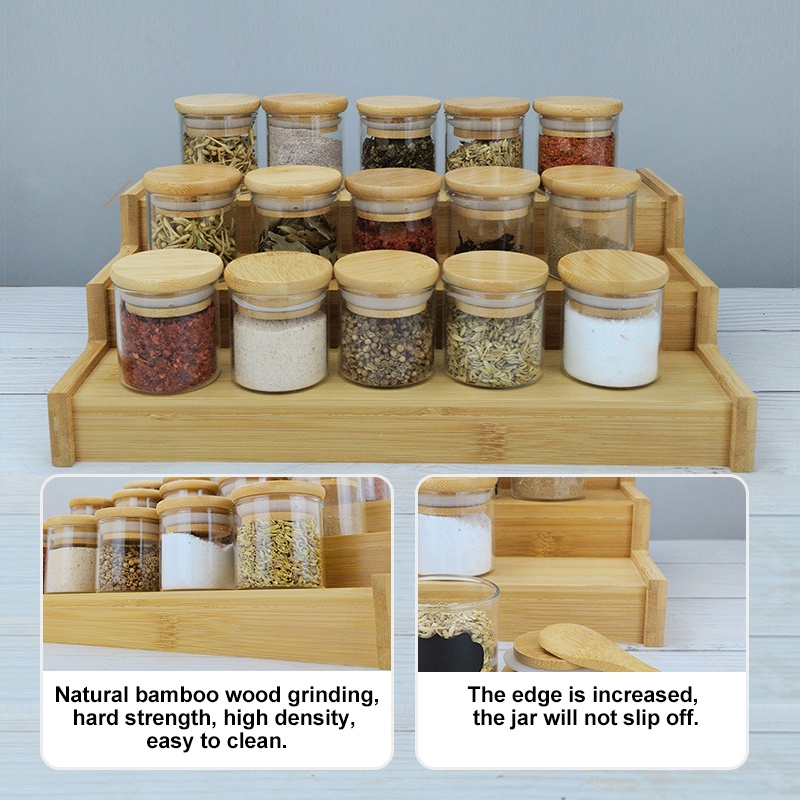 YOGO 10Pcs Set balang kaca Botol perasa Rak Buluh Balang Kaca Rak Pemegang Balang Perisa Set Balang Kaca Rempah