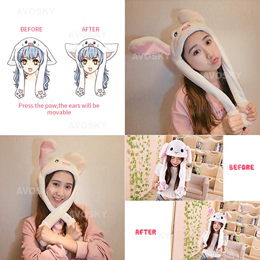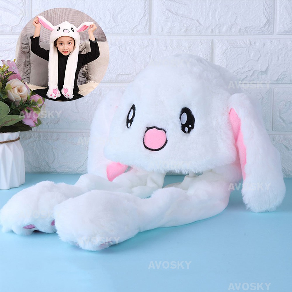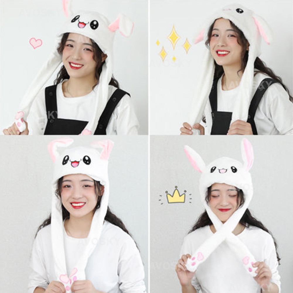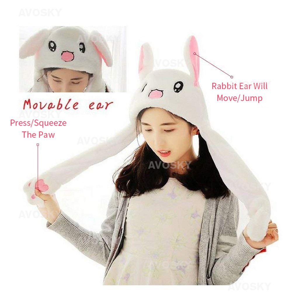 YOHESO Moving Magnet Cute Hat TIK TOK Plush Toys Funny Bunny Rabbit Ears Cap