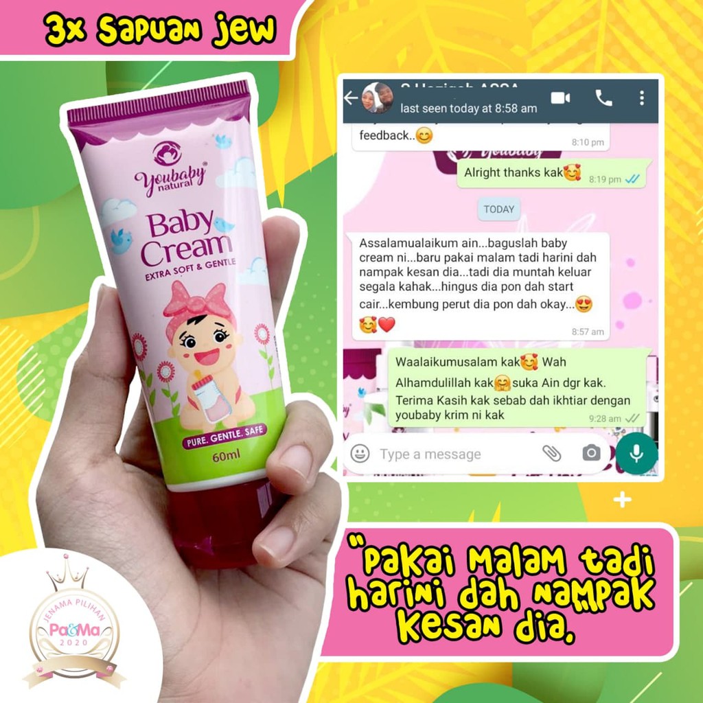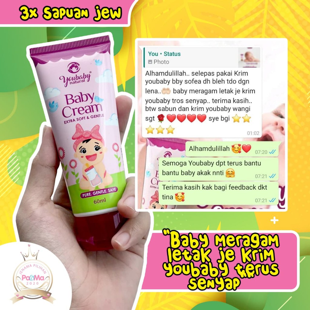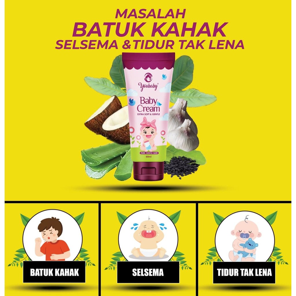 YOUBABY Baby Cream Free Gift Krim AntiI Batuk Kahak Selsema Ruam Kembung Perut Original HQ (60ML)