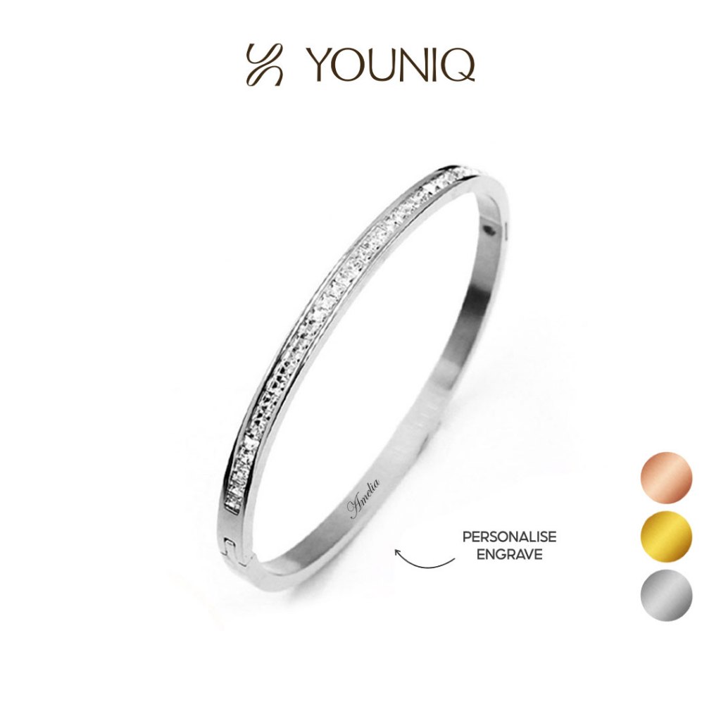 YOUNIQ ETERNAL 14K Rosegold / Gold / Silver Titanium Bangle with Cubic Zirconia EG