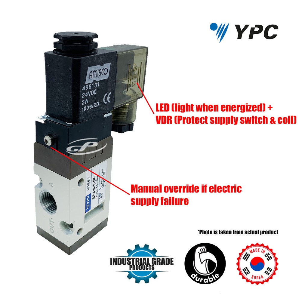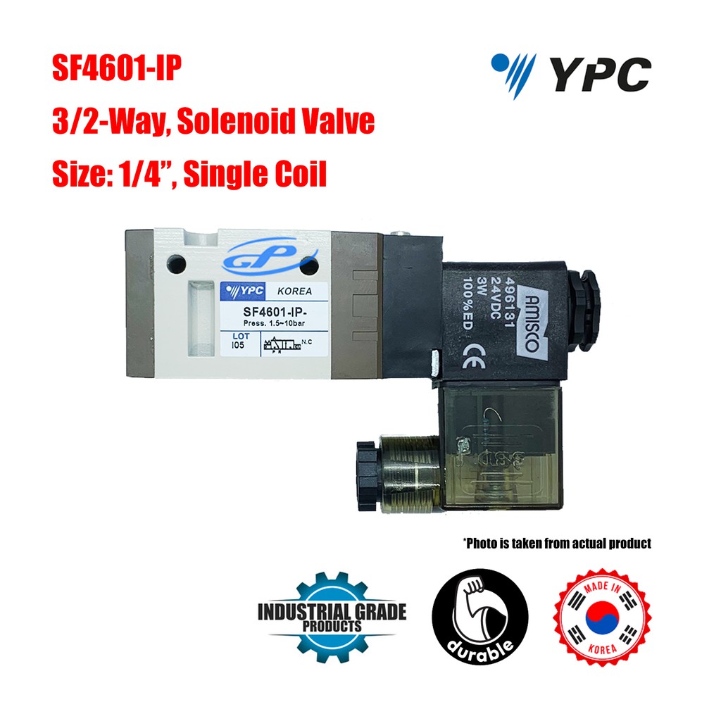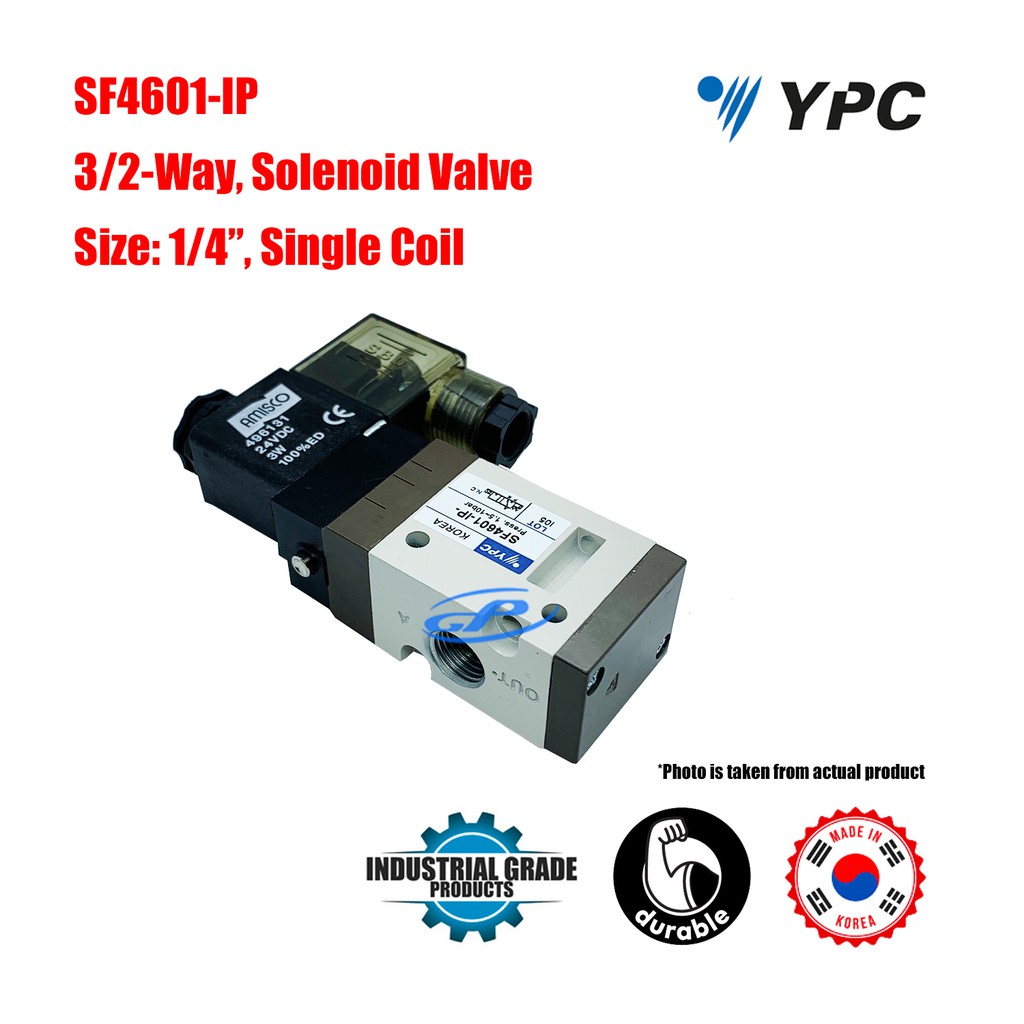 YPC SF4601-IP SOLENOID VALVE 3/2 WAY SINGLE COIL SPRING RETURN 1/4" PNEUMATIC