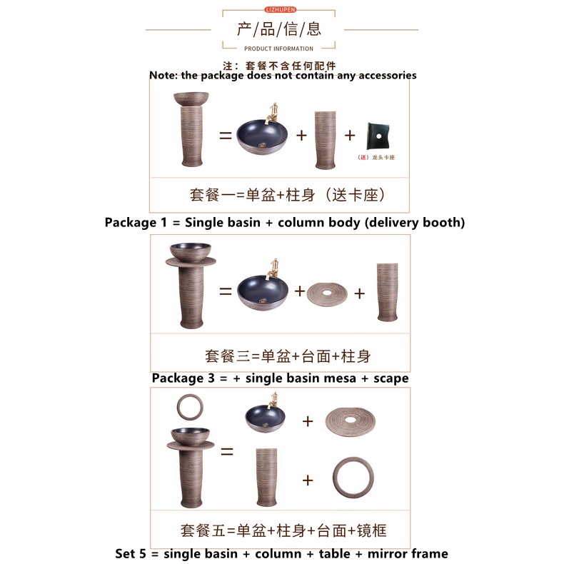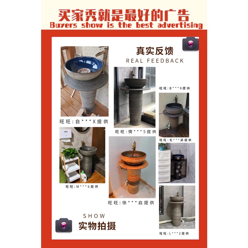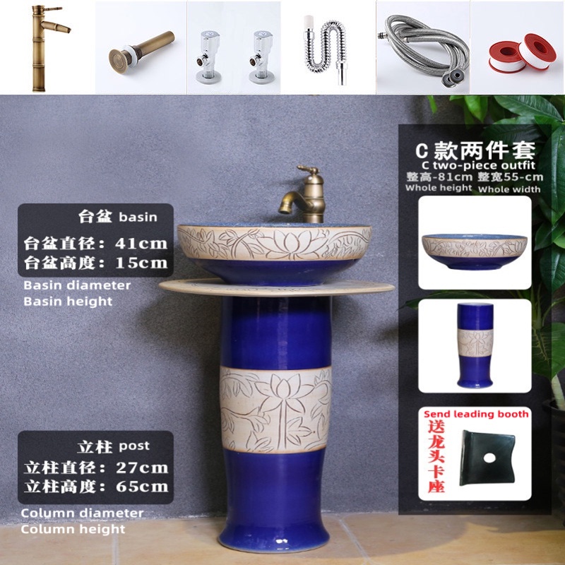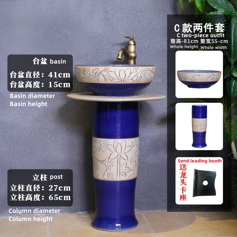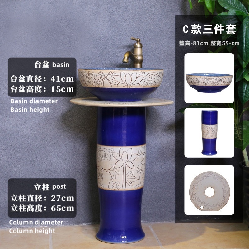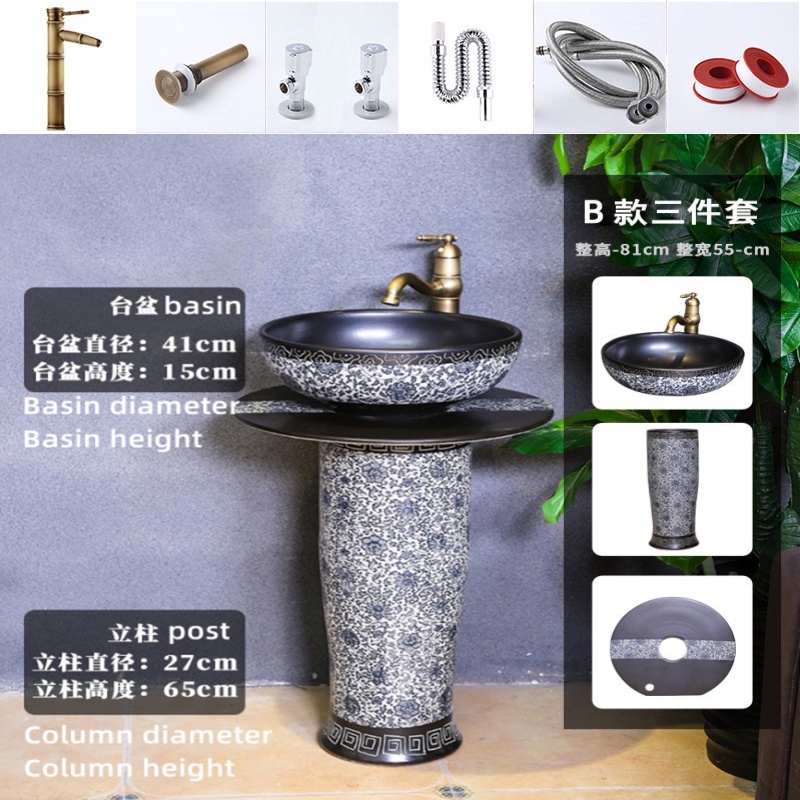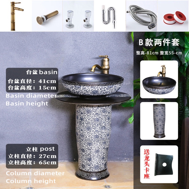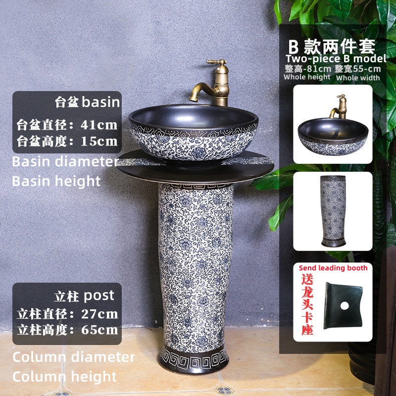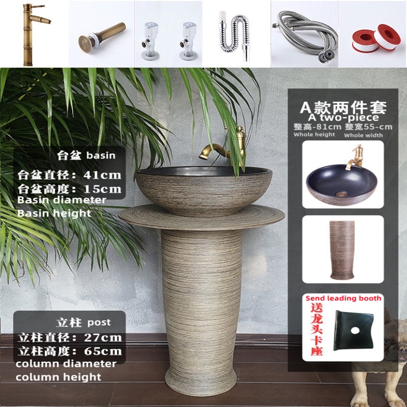 YS Outdoor Vertical Column Washbasin Bathroom Wash Basin Outdoor Courtyard Floor Garden Inter-Platform Basin Home Balcny