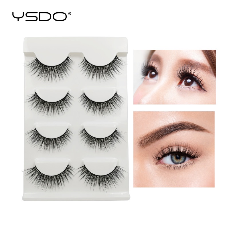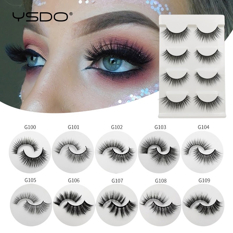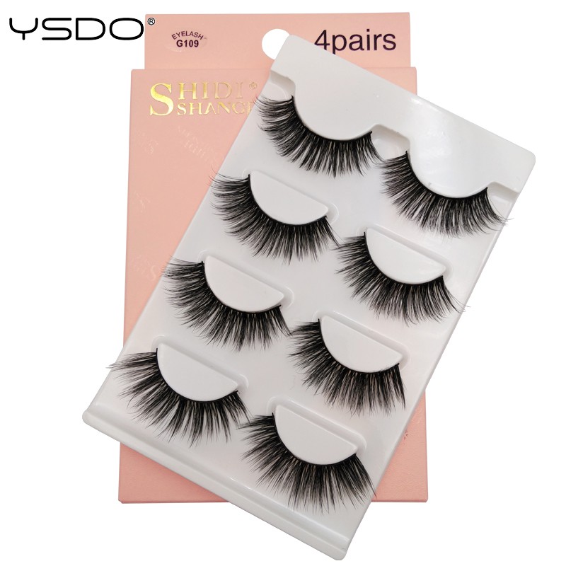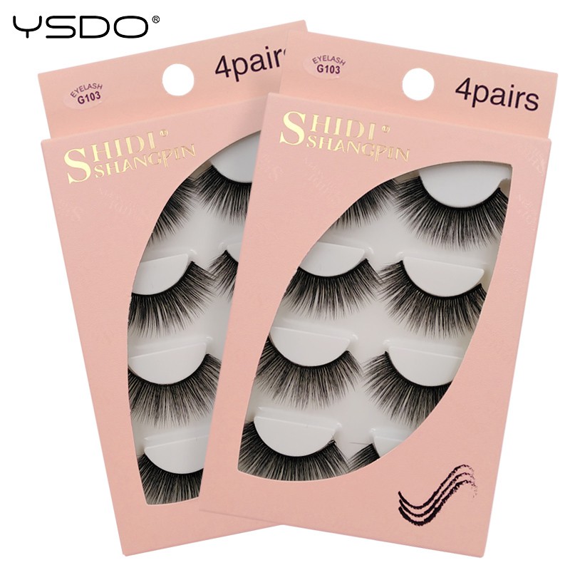 YSDO 4 Pairs Eyelashes Natural Long Handmade 3D Mink Lashes Makeup Curly Wispy Eyelash False Eyelash Extension