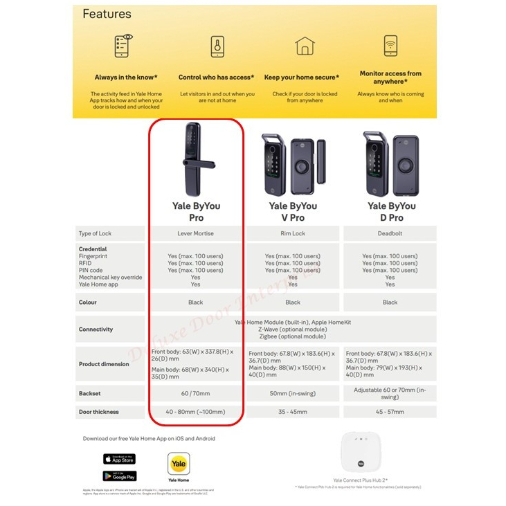 Yale ByYou Pro Yale Smart Door Lock Digital Door Lock Yale Smart Lock Digital Lock Smart Lever Mortise Yale Home App