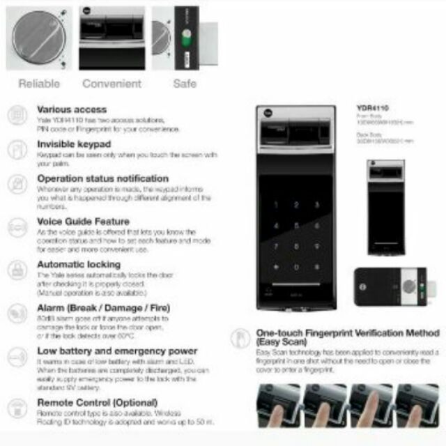 Yale YDR4110+ Fingerprint, Pin, Bluetooth Optional Smart Digital Rim Door Lock YDR 4110 Wi-Fi optional