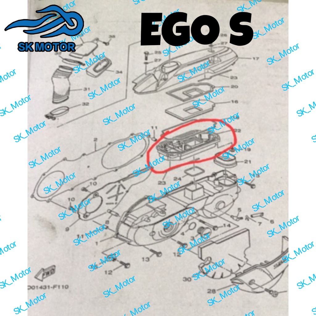 Yamaha EGO S EGO-S Original Crankcase Engine Cover / CVT Upper Box Cover / Cover Box CVT Atas 14D-E5492-00