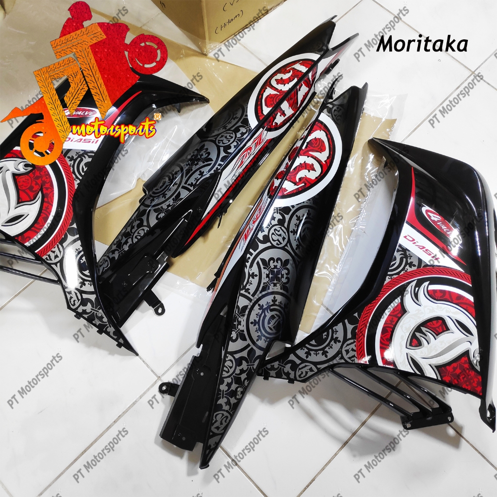 Yamaha LC 135 Cover Set Black Hitam Kilat V1 V2 V3 V4 V5 V6 V7 Batik Hitam Merah Red NO 6 Siap Lekat OEM HLY Original