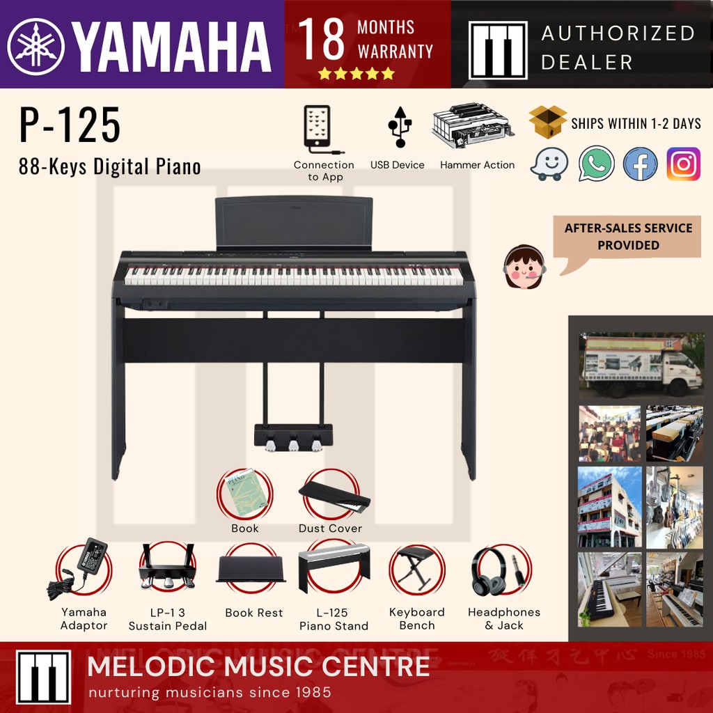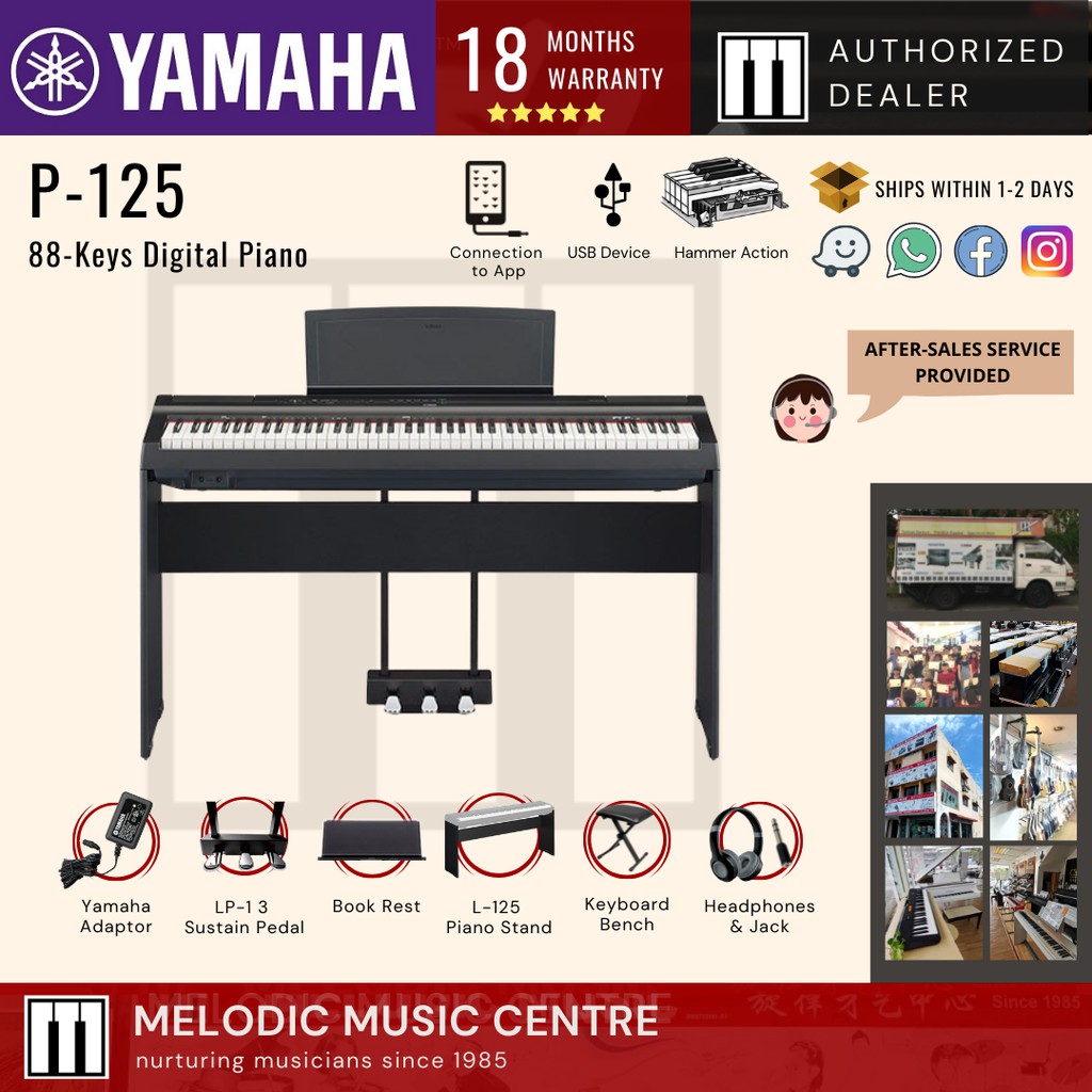 Yamaha P-125 Digital PIano 88 keys BLACK Package (P125B / P125 / Yamaha P125 Digital Piano)