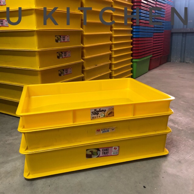 Yellow/White Plastic Cake Tray With Cover / Bakery Tray / Bread Tray / Food Tray / Tray Kuning Kek Roti Kuih / Dulang