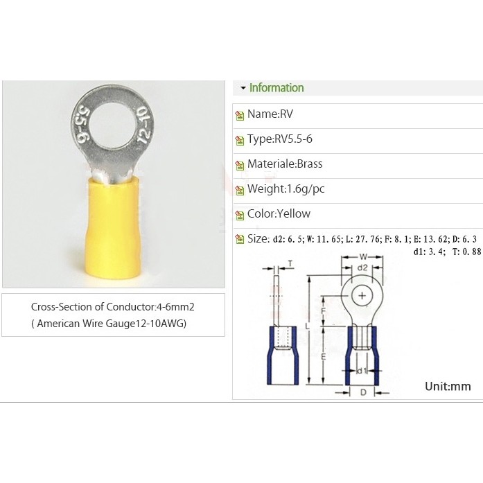 Yellow Ring Insulated Terminal RV 5.5-6 100pc