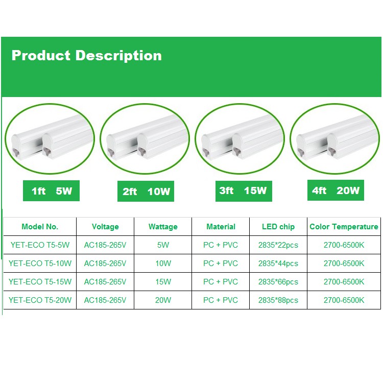Yetplus Lampu LED T5 Tube Light T5 Curve Light T5 Ceiling Light 1/2/3/4Feets PF >0.6, PF 0.9 SIRIM & 2Years Warranty