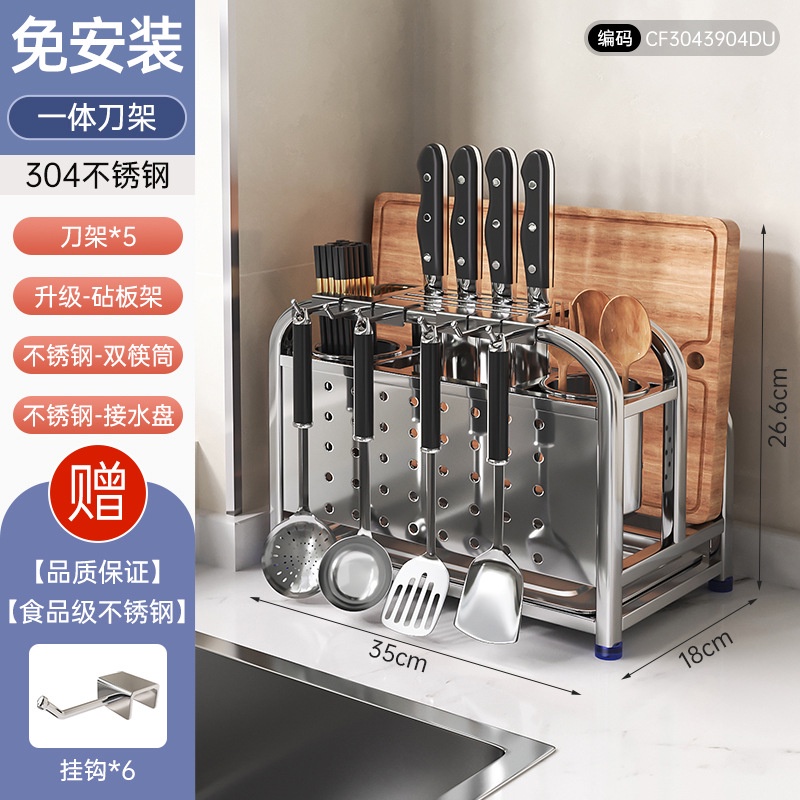 Yfd304 Stainless Steel Kitchen Knife Rack Shelf Multifunctional Pot Lid Cutting Board Countertop Drain Knife Cutting Board Storage Rack