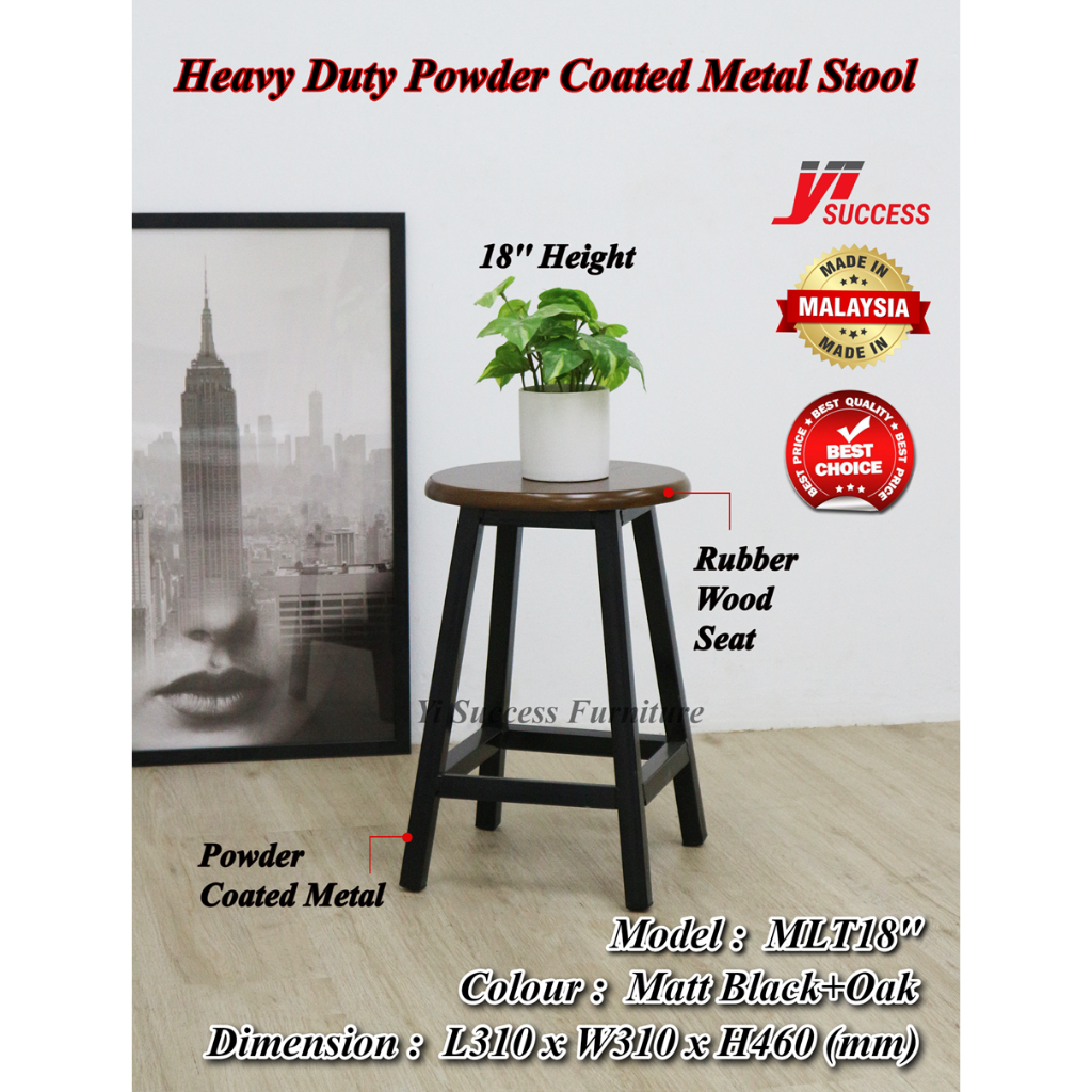 Yi Success 18" Metal Bar Stool / Heavy Duty Metal Legs Bar Stool / Solid Wood Seat / Powder Coated Metal Base Bar Stool