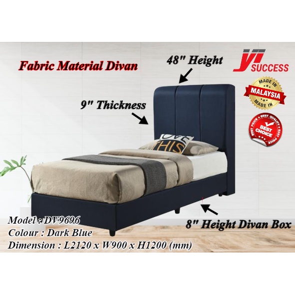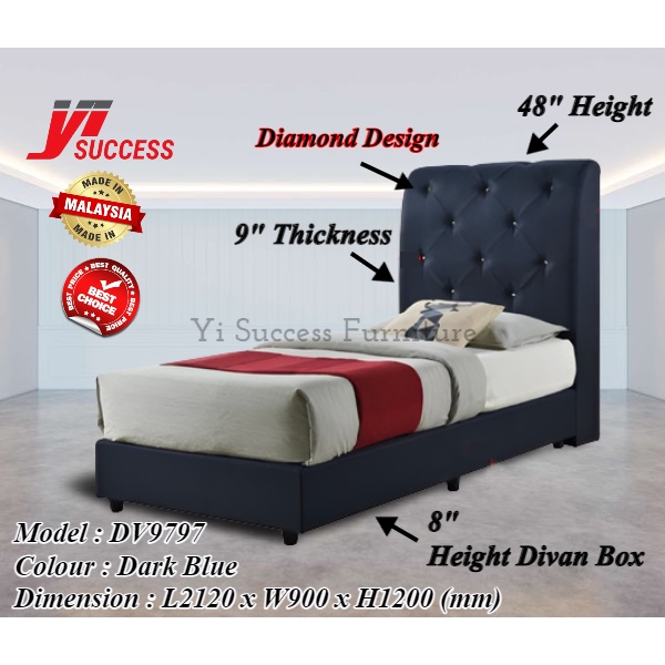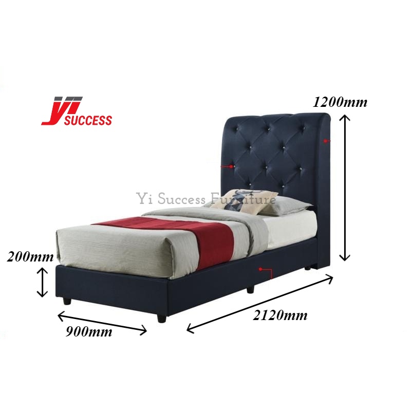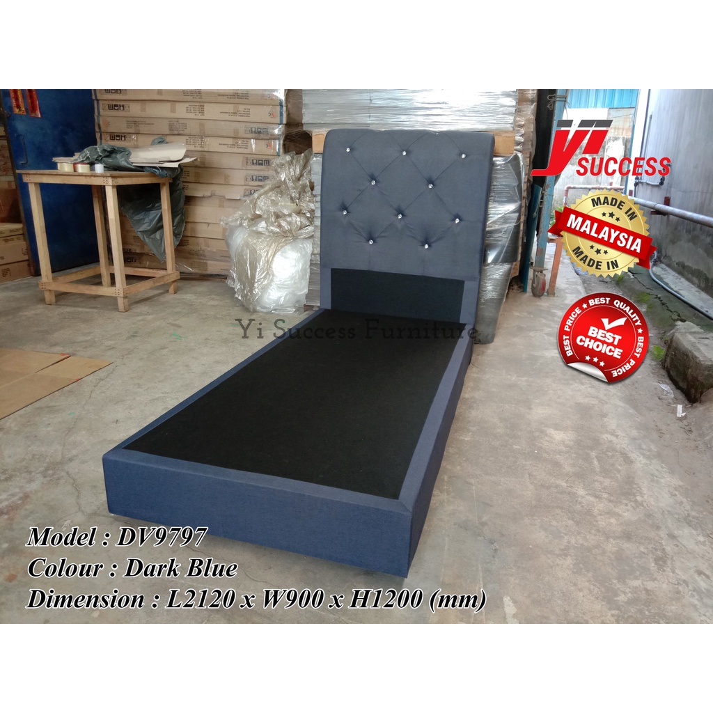 Yi Success Diamond Design Single Bed Frame / Quality Single Divan / Grey Colour Fabric Divan / Bedroom Furniture/Katil