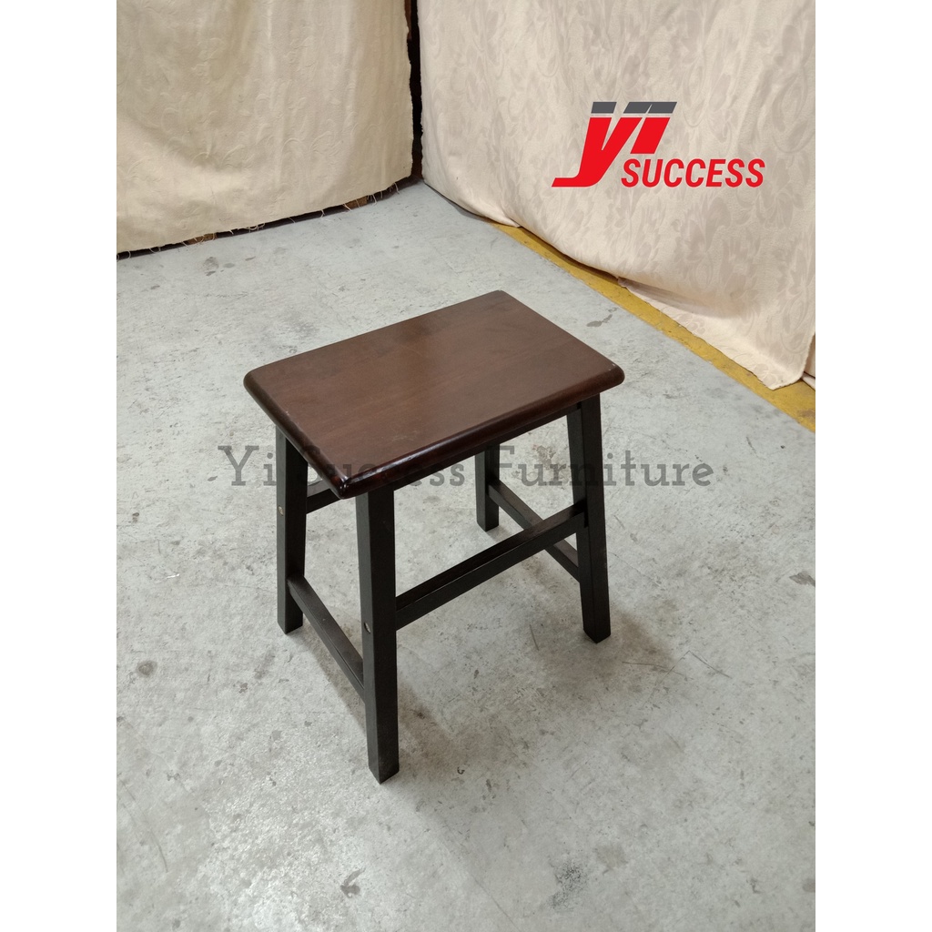 Yi Success Full Solid Rubber Wood Scooping Rectangle Stool / High Quality Stool Chair / Kerusi Bangkuk Kayu / Bar Stool