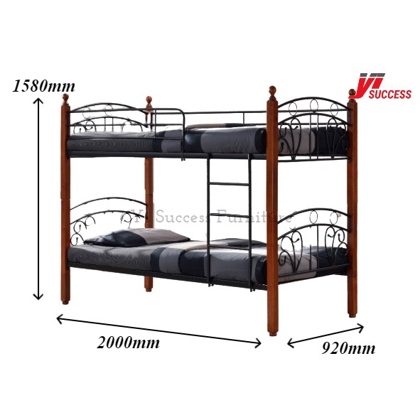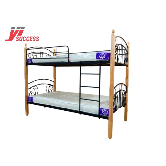 Yi Success Single Wooden Post Metal Double Decker / Katil Dua Tingkat Bujang / Katil Besi / Katil Double Decker Besi