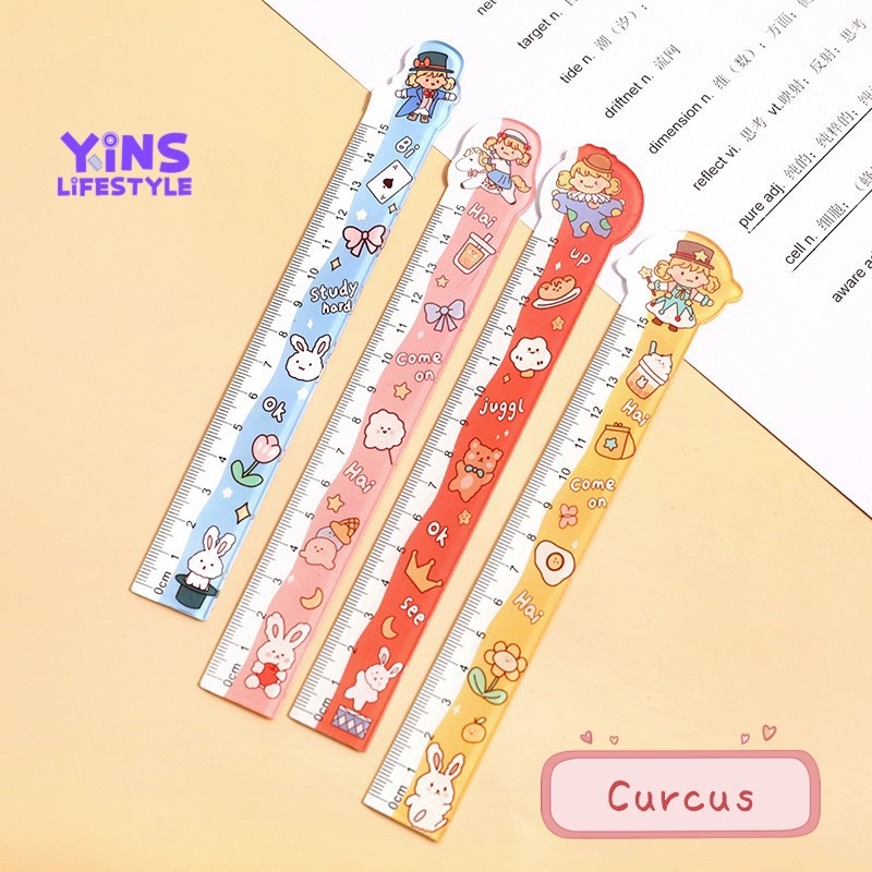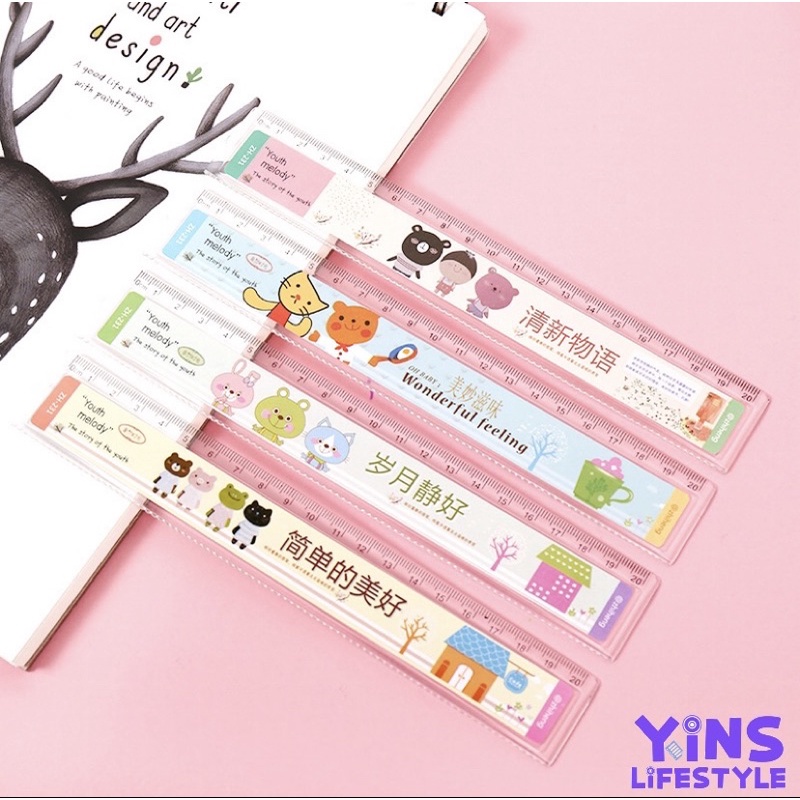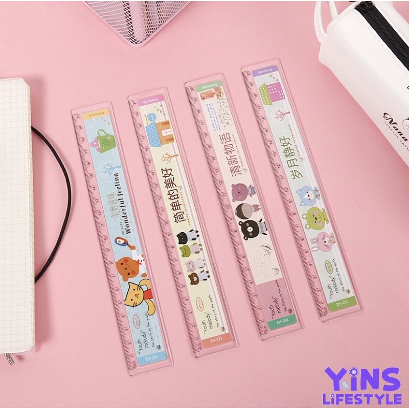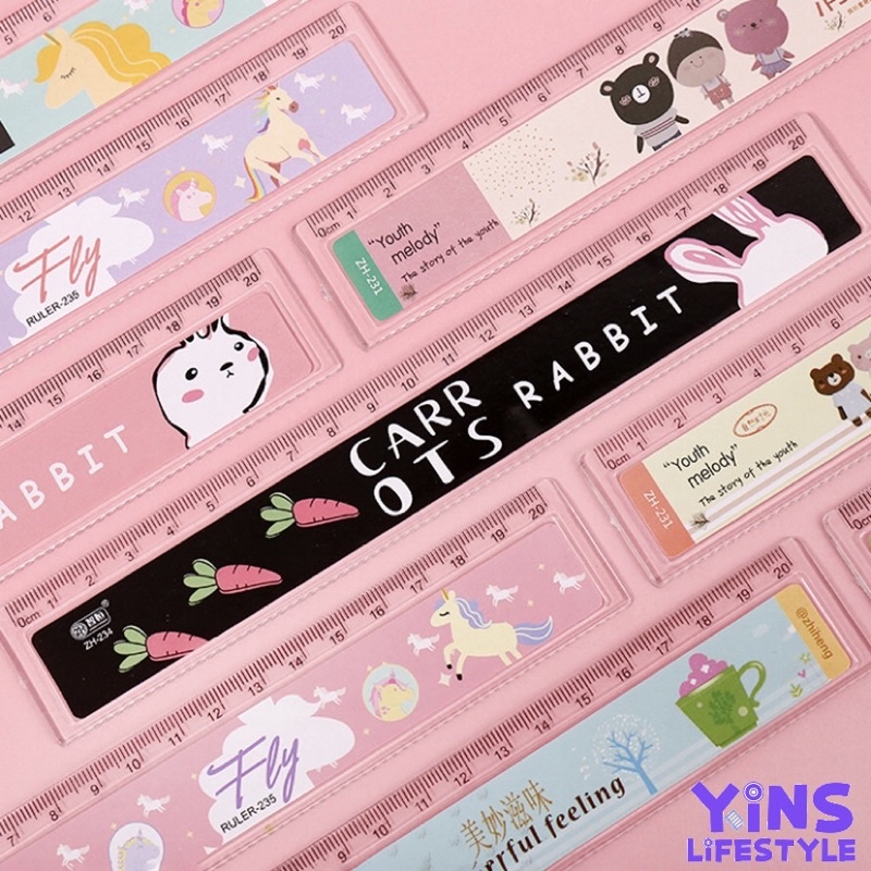 Yins. Cute Ruler Korean Flexible Plastic Student Straight Ruler Cute Creative 10cm - 20cm Stationary Organizer Pembaris