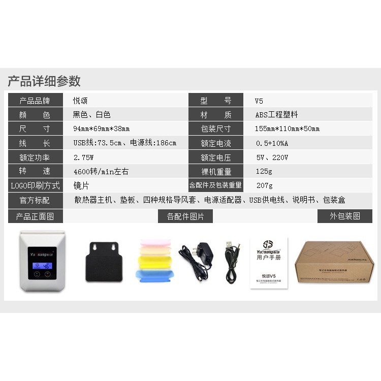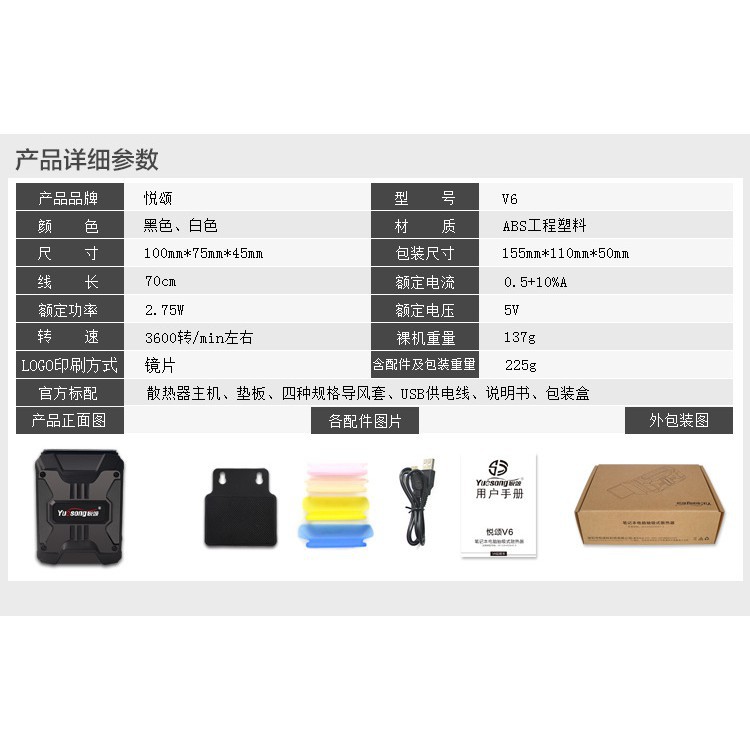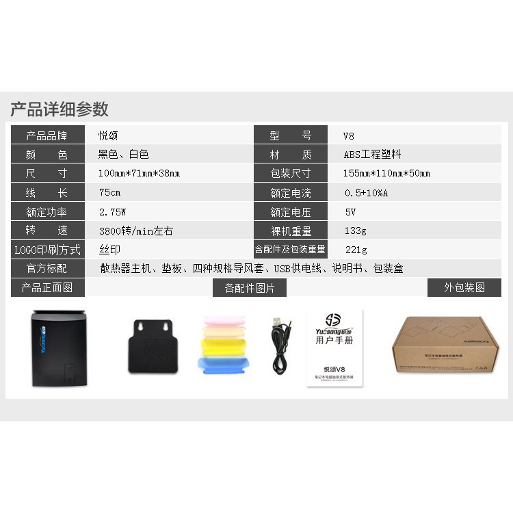 Yuesong V5 V6 V8 USB Portable Laptop Cooler Cooling Fan