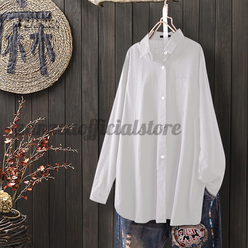 ZANZEA Women Casual Long Sleeve Loose Split Hem Plus Size Blouse
