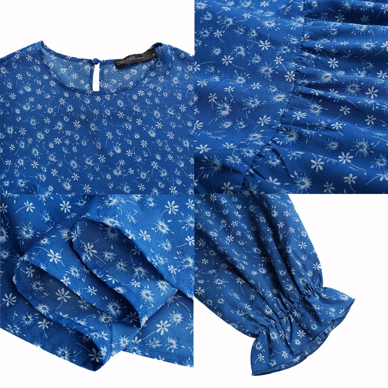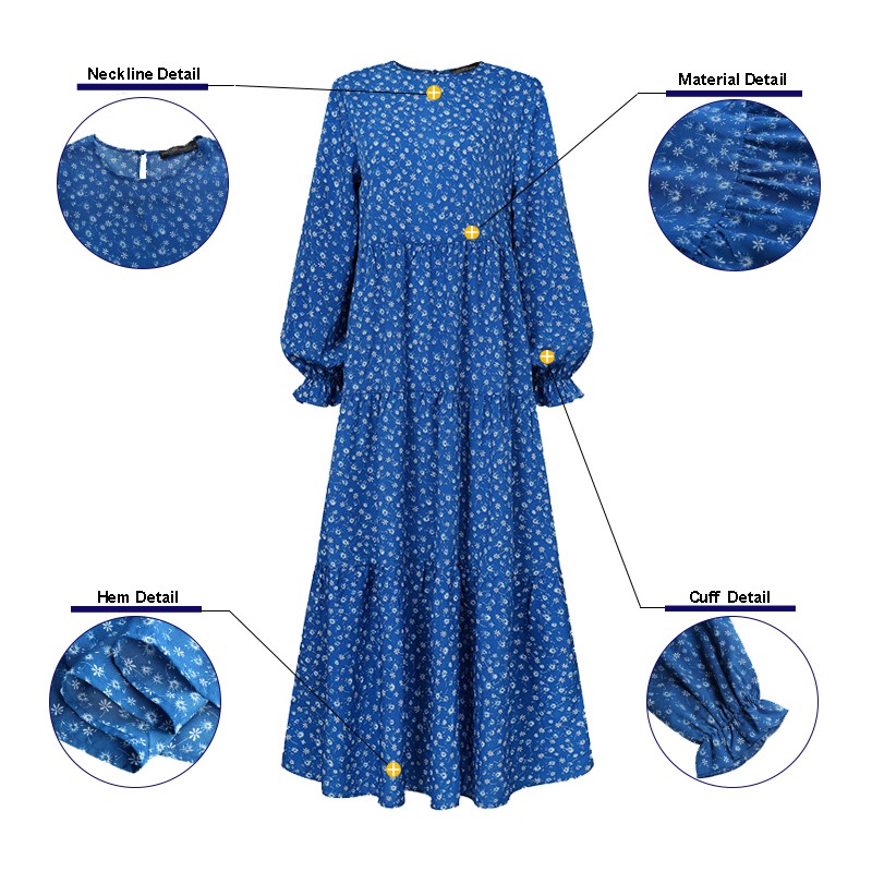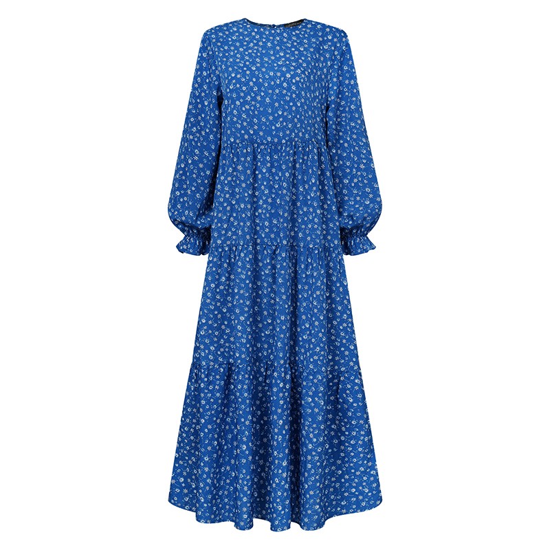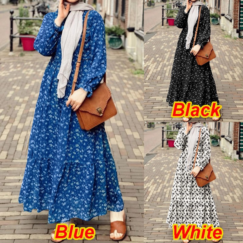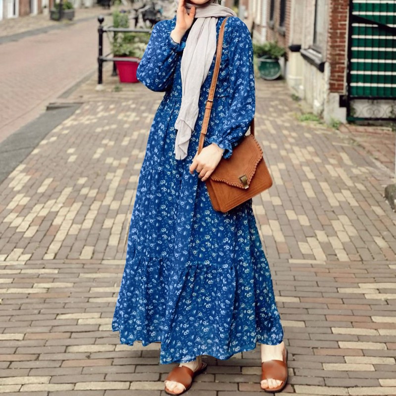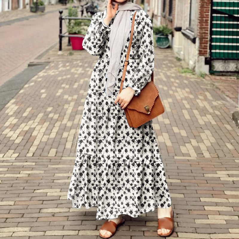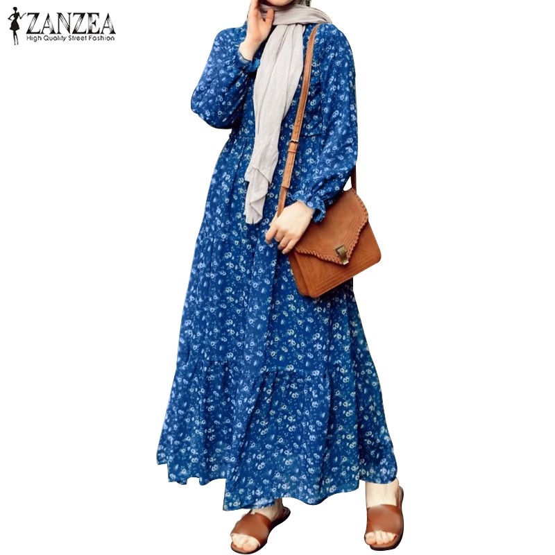 ZANZEA Women Casual Puff Sleeve Ruffled Hem O-neck Muslim Long Dress