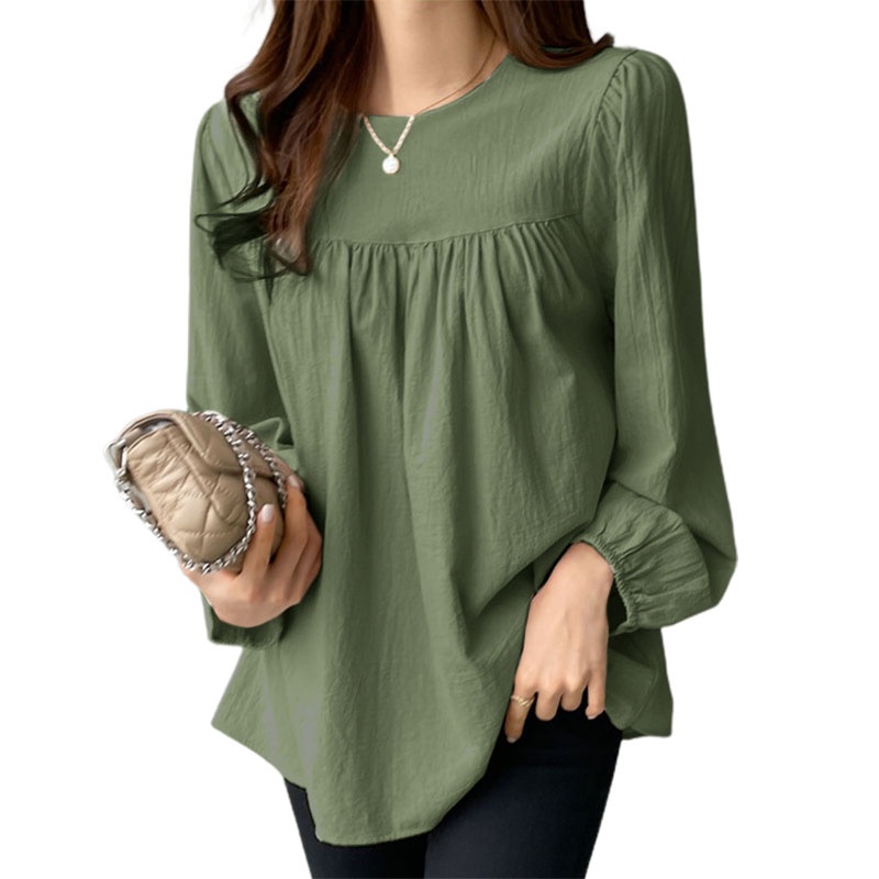 ZANZEA Women Korean Casual Loose Long Sleeve Square Neck Swing Solid Blouse