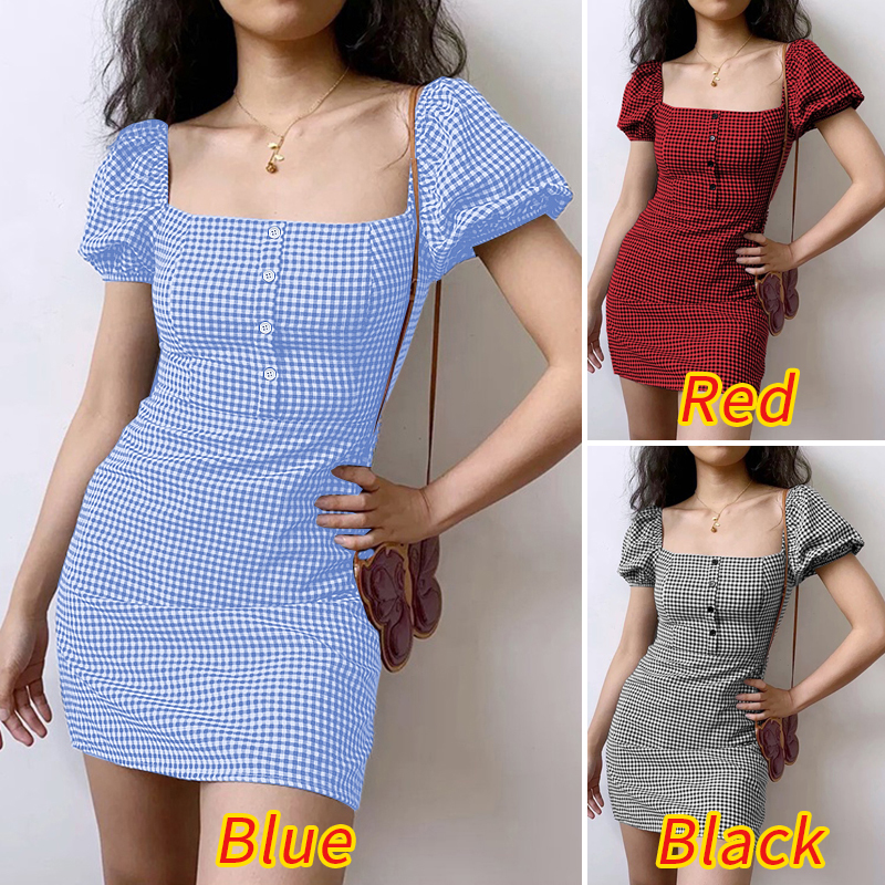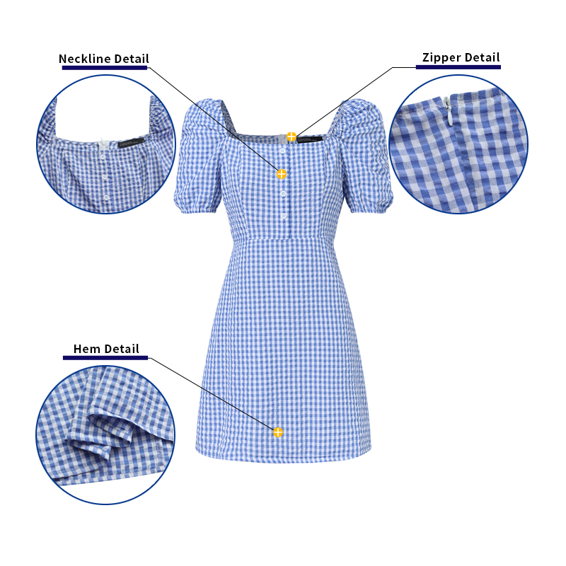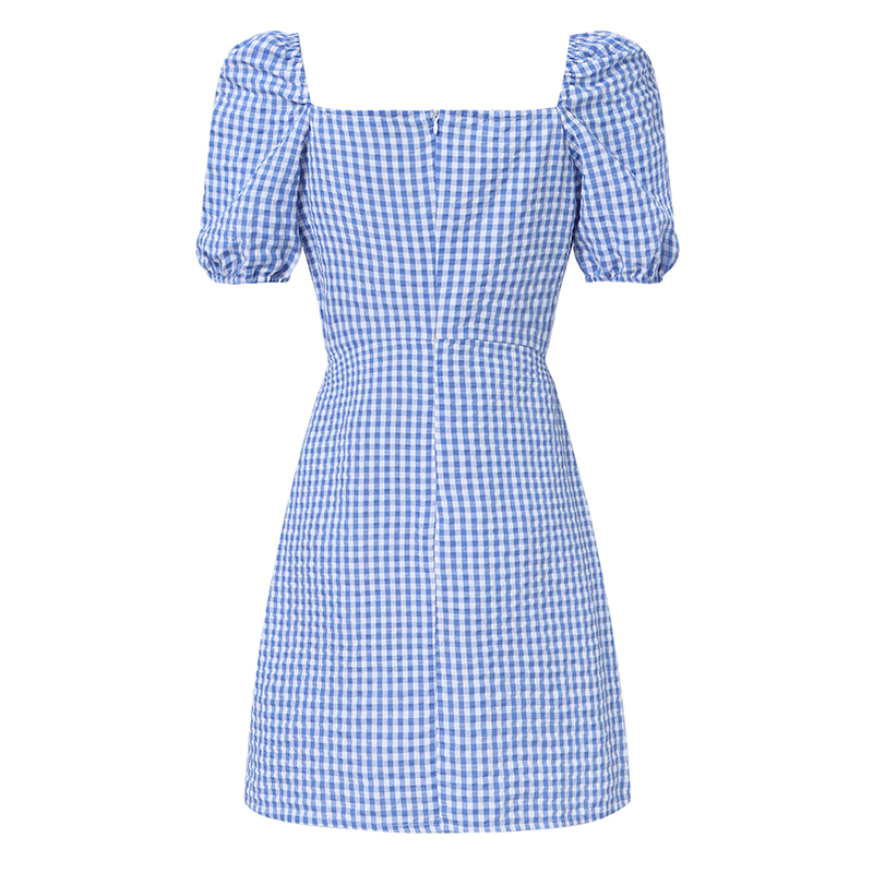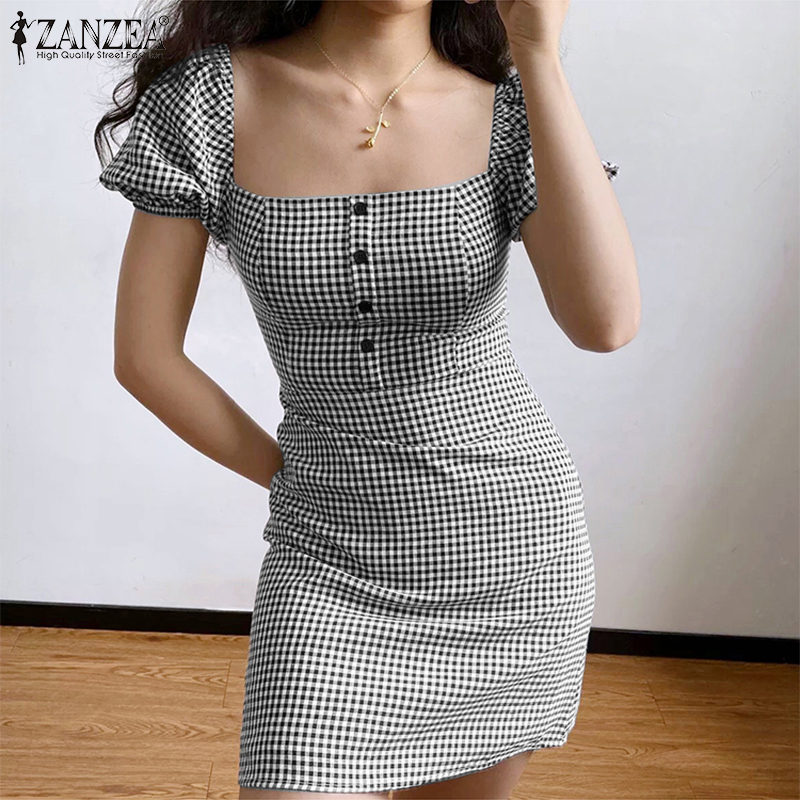 ZANZEA Women Short Sleeve Pliad Square Collar Puff Sleeve Elastic Cuff Korea Mini Dress