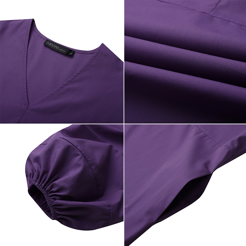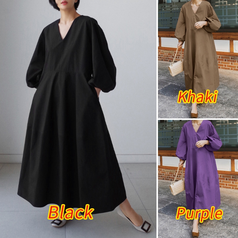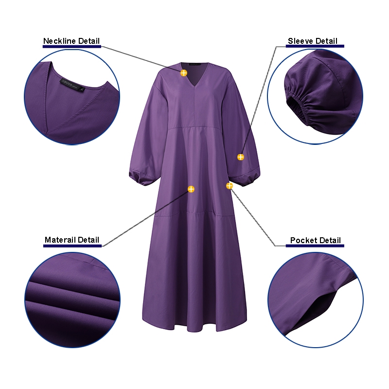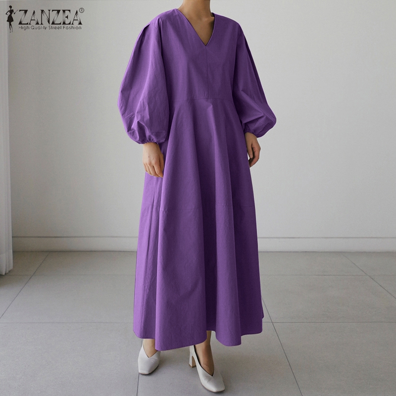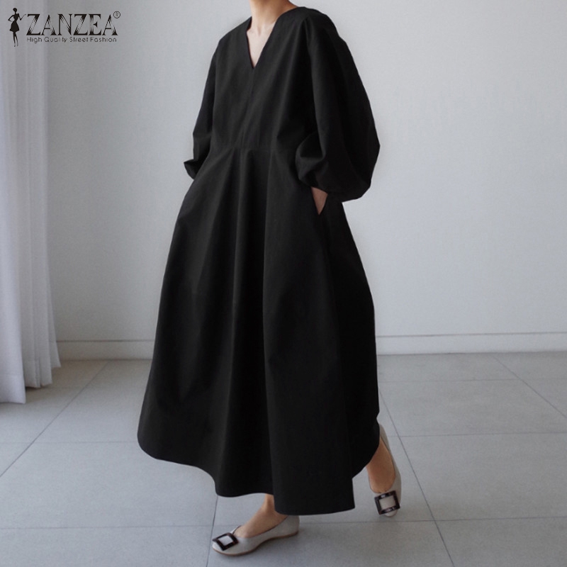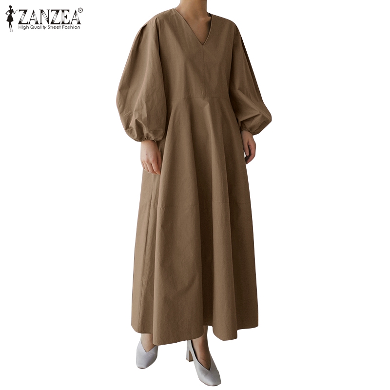 ZANZEA Women V Neck Long Puff Sleeve Side Pockets Maxi Dress