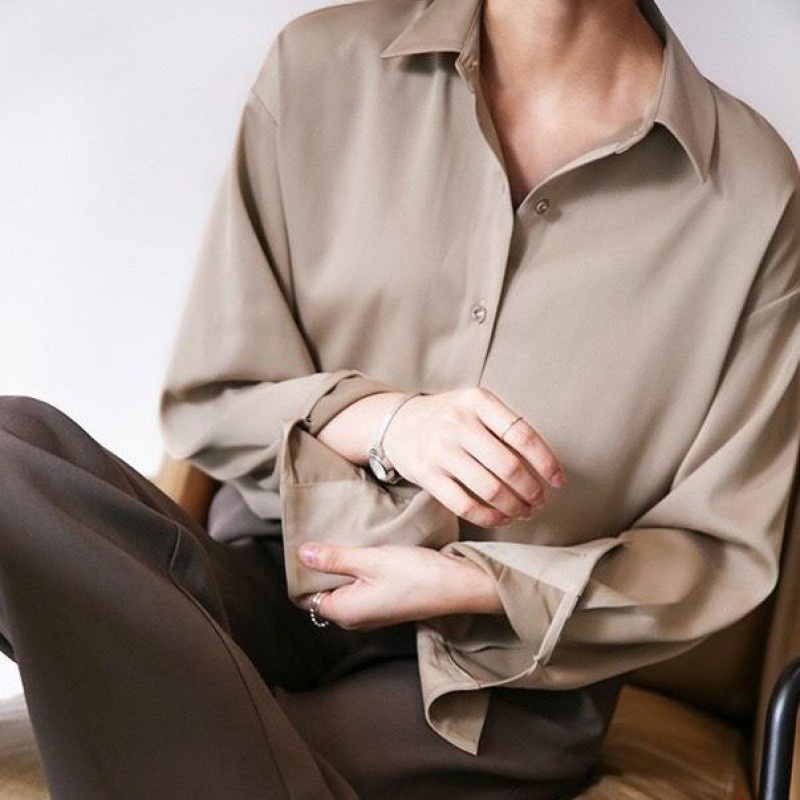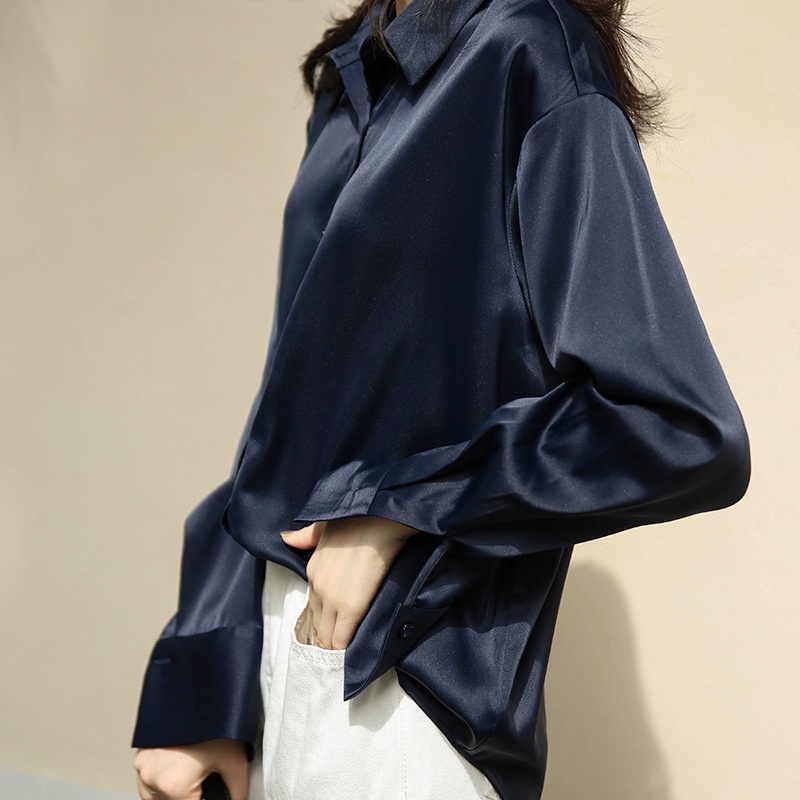 ZANZEN Kemeja Wanita Women Satin Blouse Long Sleeve Loose Blouse Kemeja Perempuan Baju Wanita Lengan Panjang Kemeja