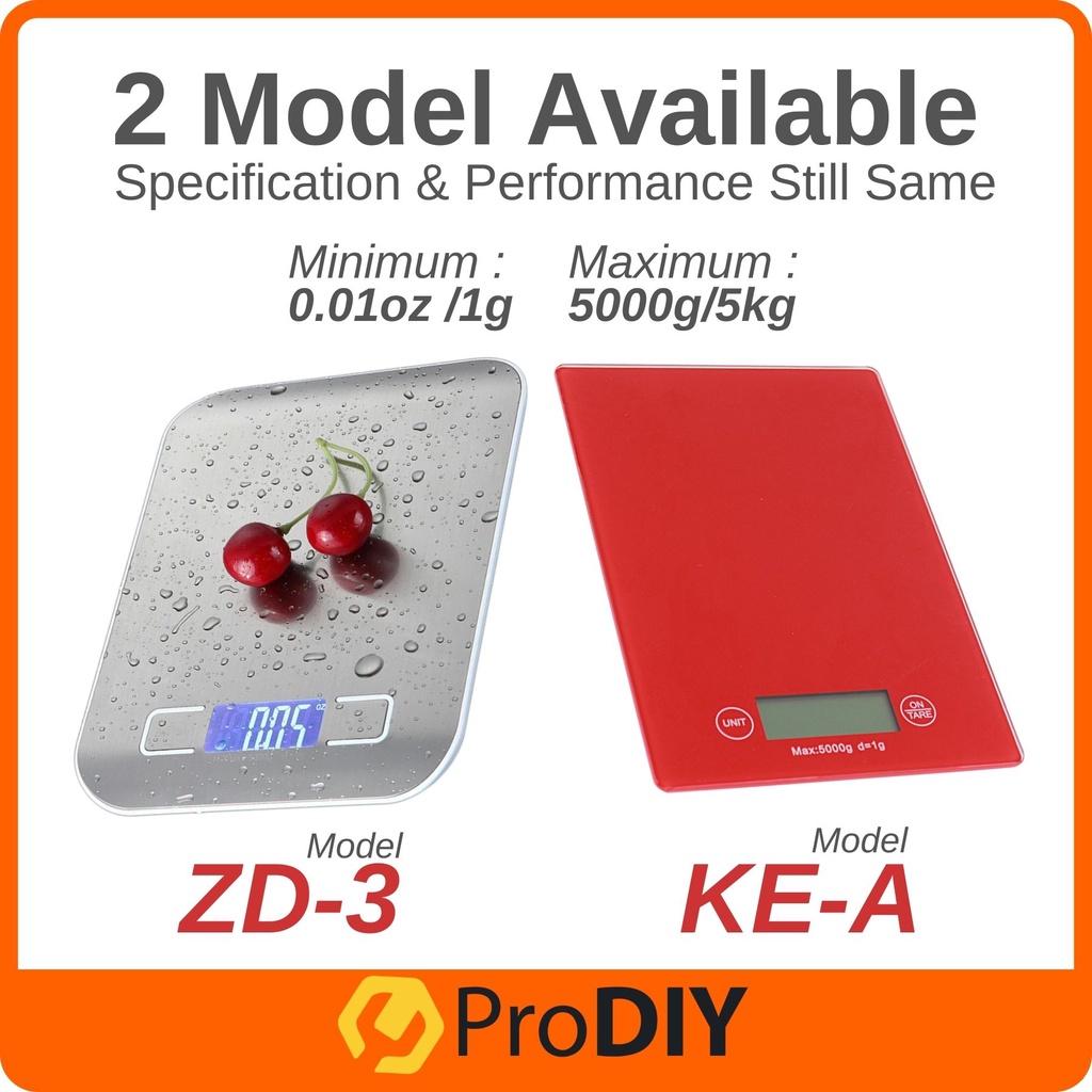 ZD-3 Gram Scale Stainless Steel Ethical Multifunction Kitchen Digital Food Scale 5000g 0.01oz /1g (Silver) C/W 2 pcs AAA