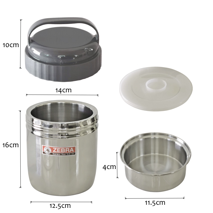 ZEBRA SUS 304 STAINLESS STEEL DOUBLE WALL FOOD POT FOOD CARRIER FOOD CONTAINER 14CM